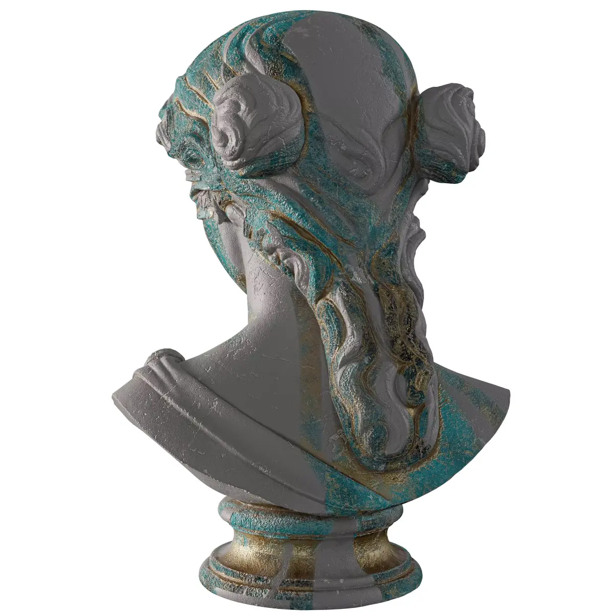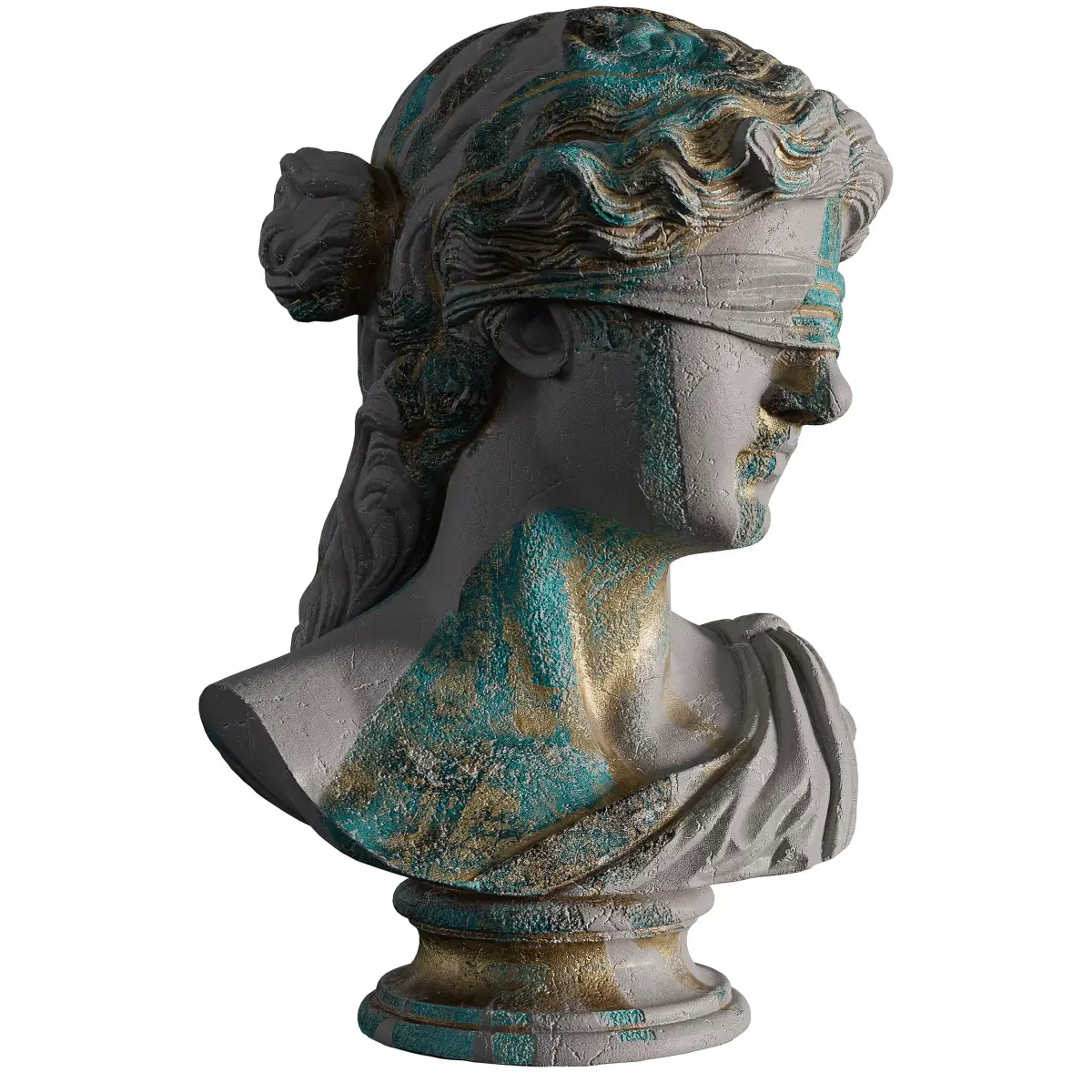 Name: Ancient Old Greek SculptureType: modelFormat: 3Ds Max 2013Export: FBX, OBJRender: VRay (5.x), Corona (9)Polys: 40759Verts: 40758Matclasses: VRayMtl,_CoronaPhysicalMtlUnits: CentimetersDimension: 63.82 x 63.71 x 99.96Date: 2025.8.19Packinfo: Packed with Model Packer by https://3dground.net/Packver: 1.9.3Description:A highly detailed and realistic 3D model of an ancient Greek-style sculpture bust. The piece features a blindfolded figure, with a weathered stone texture and striking remnants of old gold and turquoise paint. This asset is perfect for historical visualizations, game environments, and cinematic renders, adding a sense of timeless mystery and history to any scene.This premium 3D model captures the timeless beauty and historical grandeur of an ancient Greek sculpture. The bust depicts a figure with a beautifully draped cloth over their eyes, a flowing hairstyle, and classical Greek attire. The model's materials are expertly crafted to give it an authentic, aged look. The primary stone texture is weathered and worn, while the flaking, vibrant turquoise and gold paint add a layer of historical authenticity and visual interest. This asset is ready to be used in a variety of professional applications.