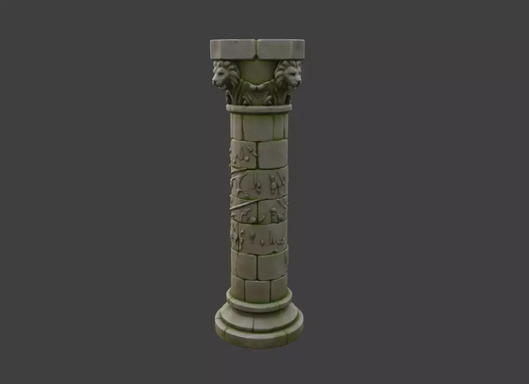 This 3D model is ideal for fantasy games, RPGs, historical-inspired environments, cinematic scenes, VR/AR experiences, and environment concept art. It can be used as a standalone ruin, a structural element in temple complexes, a dungeon landmark, or a ceremonial pillar marking sacred spaces. Whether placed in jungles, forests, deserts, or underground ruins, the column enhances atmosphere and supports environmental storytelling.