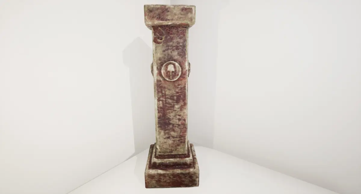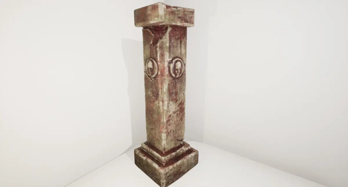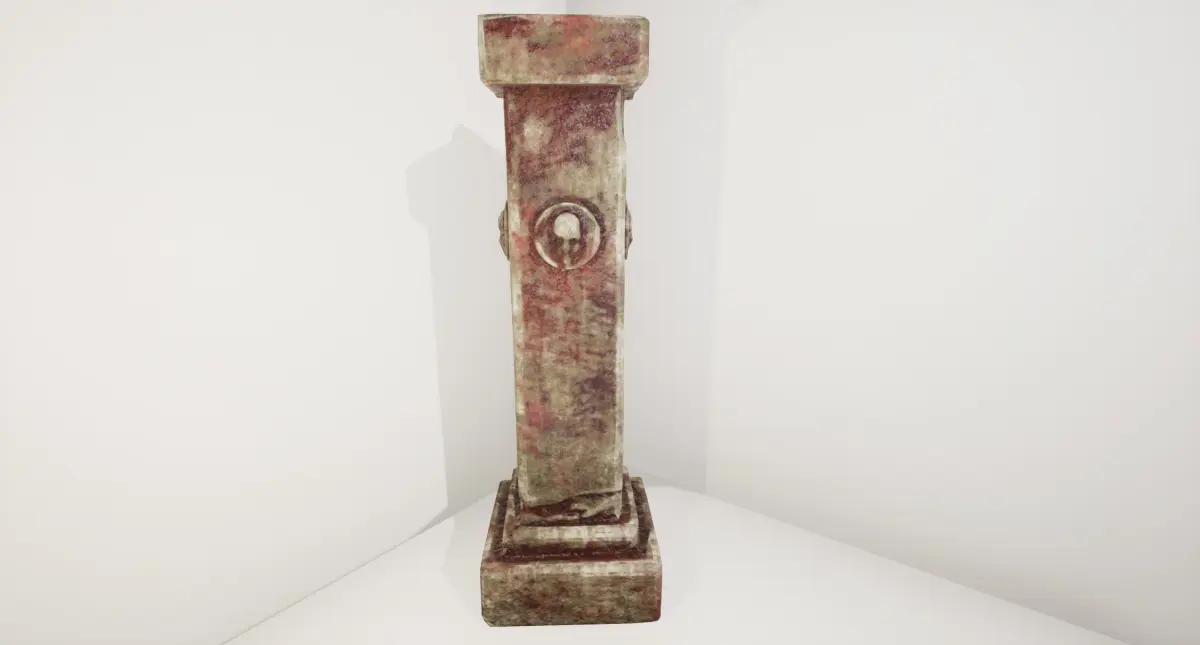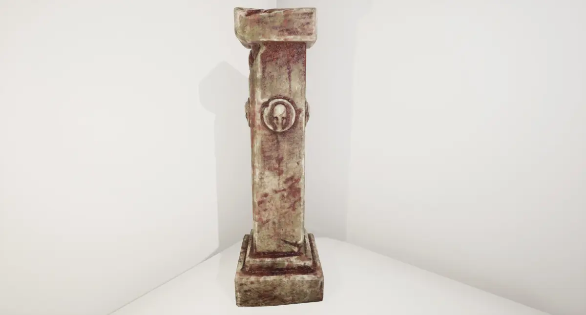 An ancient stone pillar. Old and worn down and bizarrely, covered in blood.