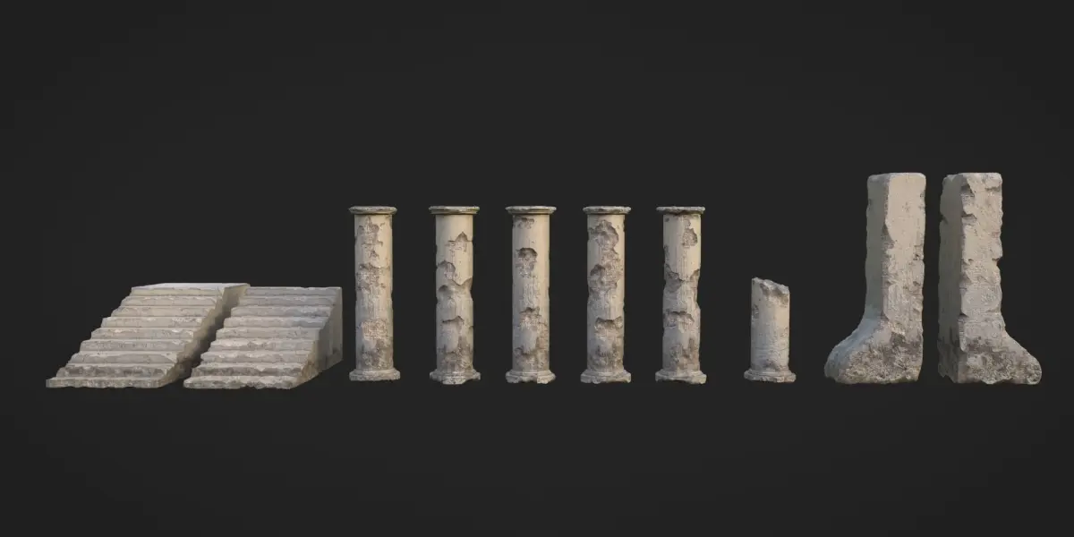 - Ancient Pillars- Ancient Stairs- Stone Damage Generator- All Settings Included- Real Time Edge Wear, Dirt, In and Out Materials are included in this Pack