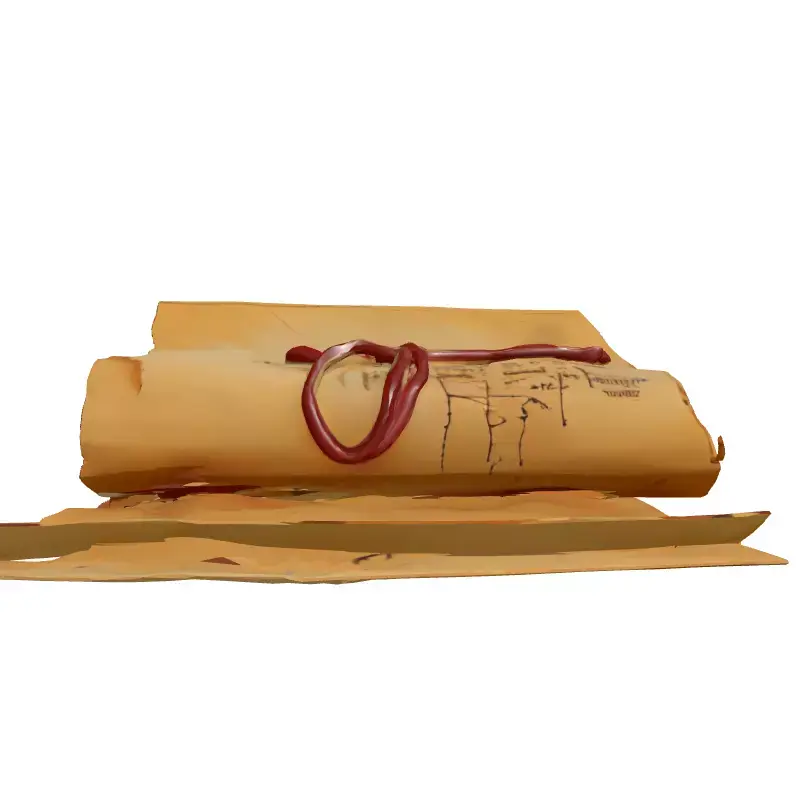 This meticulously crafted 3D model represents an ancient, rolled-up fantasy map, perfect for adding an authentic touch to your digital scenes. The map is depicted with aged, tattered parchment, featuring intricate, fictional cartography and neatly tied with a weathered string. Its design evokes a sense of mystery and adventure, making it an ideal asset for various creative projects. Possible usage scenarios include enhancing role-playing game environments, enriching adventure game props, or serving as a crucial plot device in interactive AR/VR experiences. It is also well-suited for high-quality static renderings in architectural visualization projects with historical or fantasy themes, as well as for digital art compositions and film production. The model is optimized for real-time applications, ensuring smooth performance in game engines, and is equally suitable for detailed cinematic renders. It comes with clean, efficient topology, making it ready for subdivision if higher detail is required for close-up shots. The model is fully UV unwrapped with a clear layout, allowing for easy texture modifications. PBR (Physically Based Rendering) textures are included, providing realistic material representation for excellent visual fidelity across various lighting conditions. This asset is designed to be versatile and compatible with a wide range of 3D software and engines. Supported file formats include GLB, OBJ, STL, ABC, DAE, FBX, USD, and PLY, ensuring broad accessibility and ease of integration into your workflow.