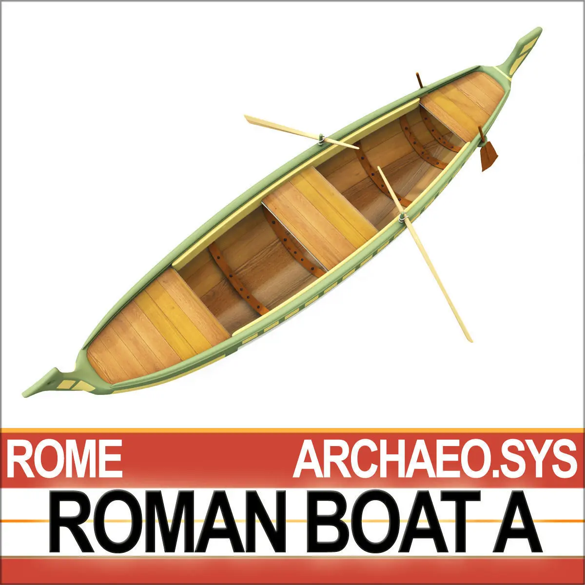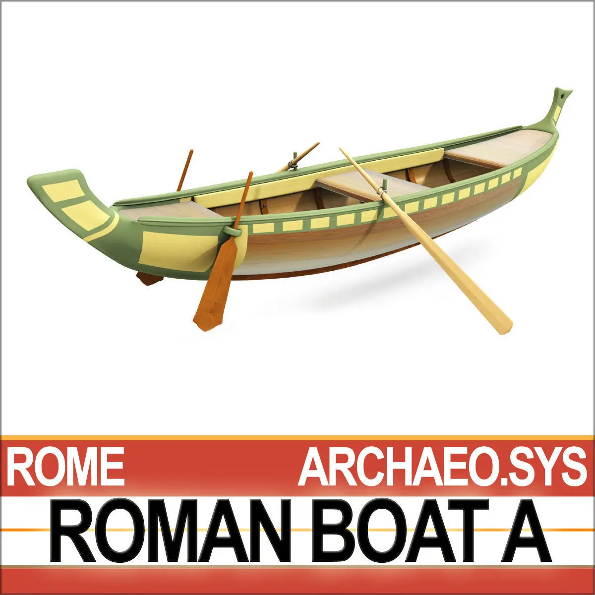 Ancient Roman Boat A, for sport or fishing. Faithful and accurate Reconstruction. C4D, 3DS, OBJ, VUE6to12!___________________________________________Ancient Roman Boat A.For sport or fishing.1 or 2 oarsmen. 1 helmsman.
