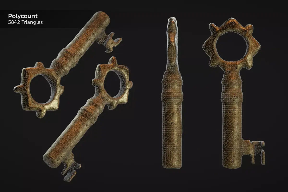High-quality realistic ancient roman brass key optimized for real-time applications such as games, VR, simulations and visualization. Perfect for fantasy scenes, historic environments, escape room, and more.