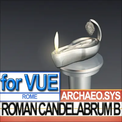 Faithful Reconstruction of a Typical Ancient Roman Silver Candelabrum. Candelabrum with 1 Silver Oil Lamp. Hi-DEF and Photoreal. VUE-3DS-OBJ.