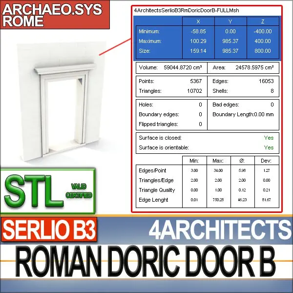 Famous Roman Doric Door by Serlio. Ready for Ancient and Modern Contemporary Architecture. Real World Scale. STL, REVIT, SKETCHUP, VUE, C4D, OBJ, 3DS ready!