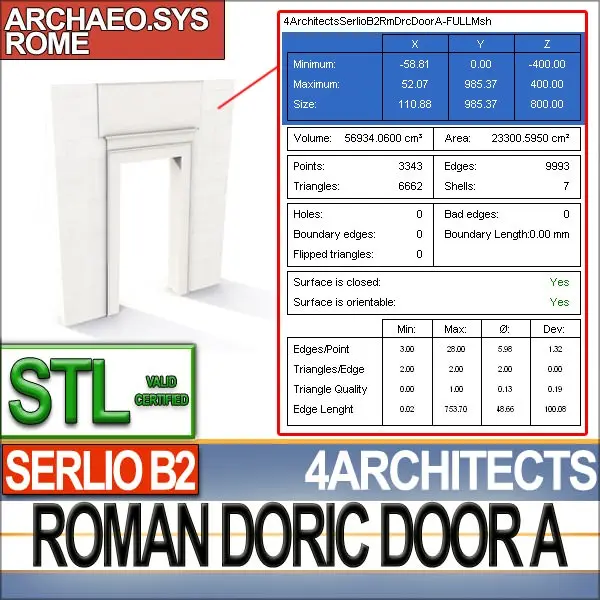 Famous interpration of the Vitruvian Doric Door by Serlio. Ready for Ancient and Modern Contemporary Architecture. Real World Scale. STL, REVIT, SKETCHUP, VUE, C4D, OBJ, 3DS ready!