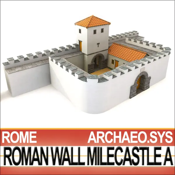 Typical Ancient Roman Wall Milecastle A, complete with details and usable interiors. 64 Textures. HD Roof. HiDetails. Faithful accurate Reconstruction. C4D, 3DS, OBJ from VUE6 to VUE11.