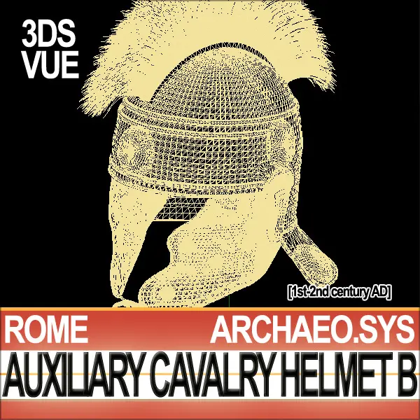 Ancient Rome Auxiliary Cavalry Helmet Type B [1st century AD - 2nd century AD]. Accurate reconstruction from Archaeological Data. Details. VUE-3DS-OBJ.