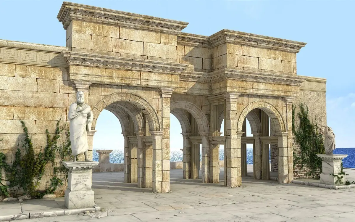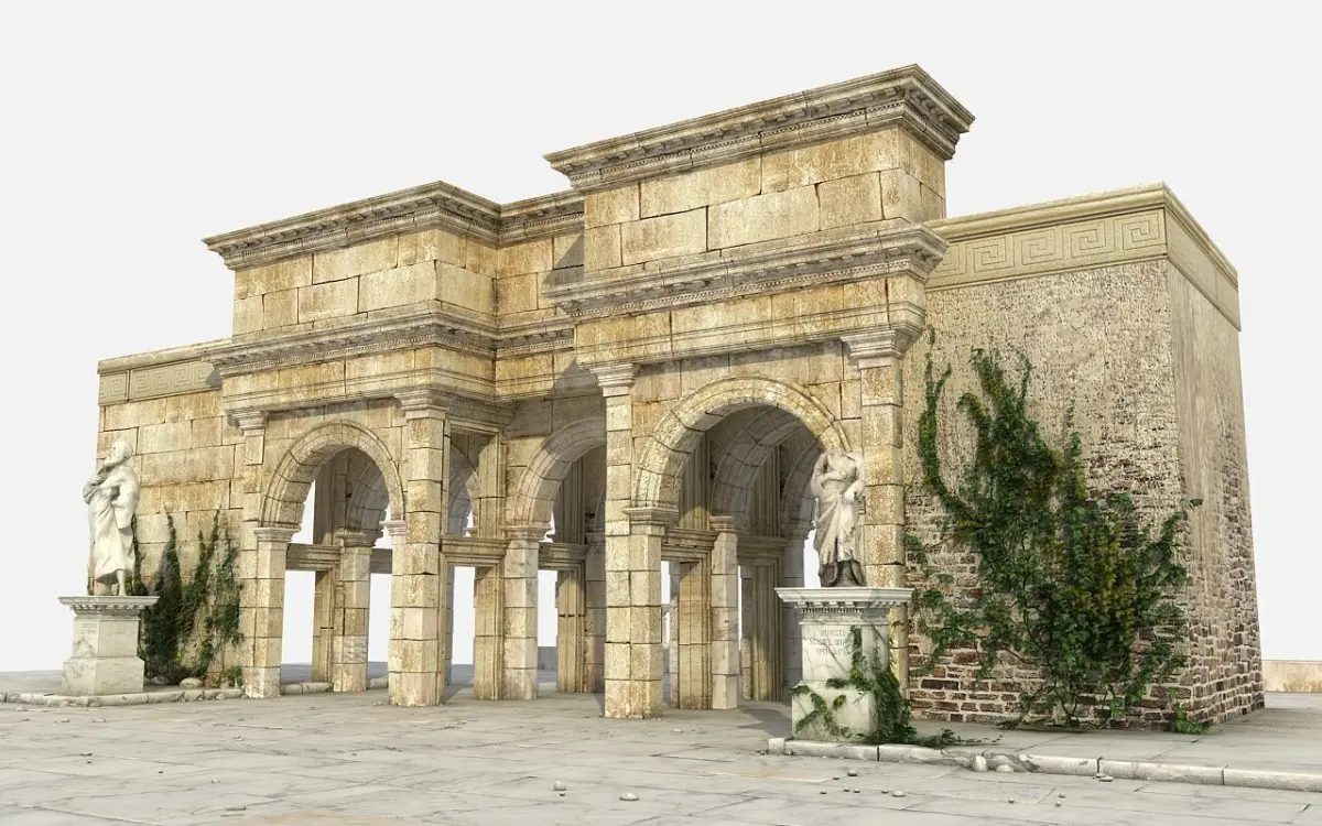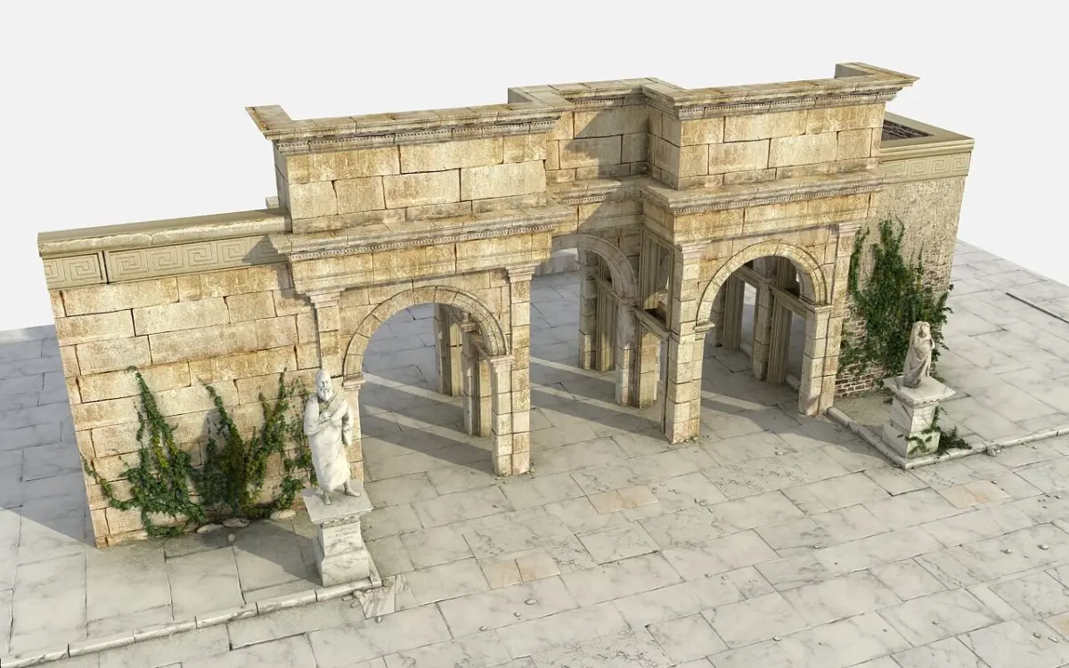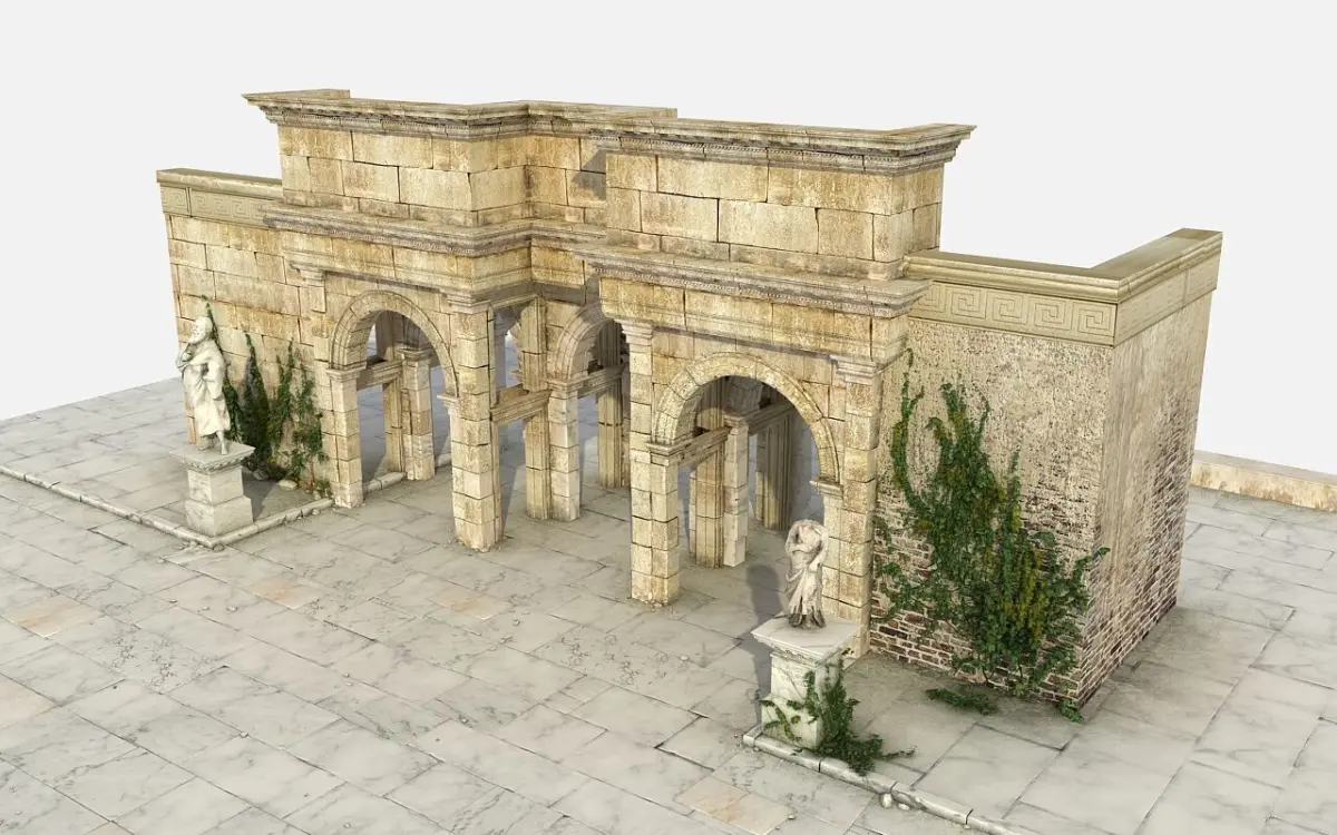 3d Ancient Ruin Gate Ancient Greek Roman Architecture Scenes are setup ready to render, All objects fully textured ready to render Format 3dsmax v-ray render, texture format jpg