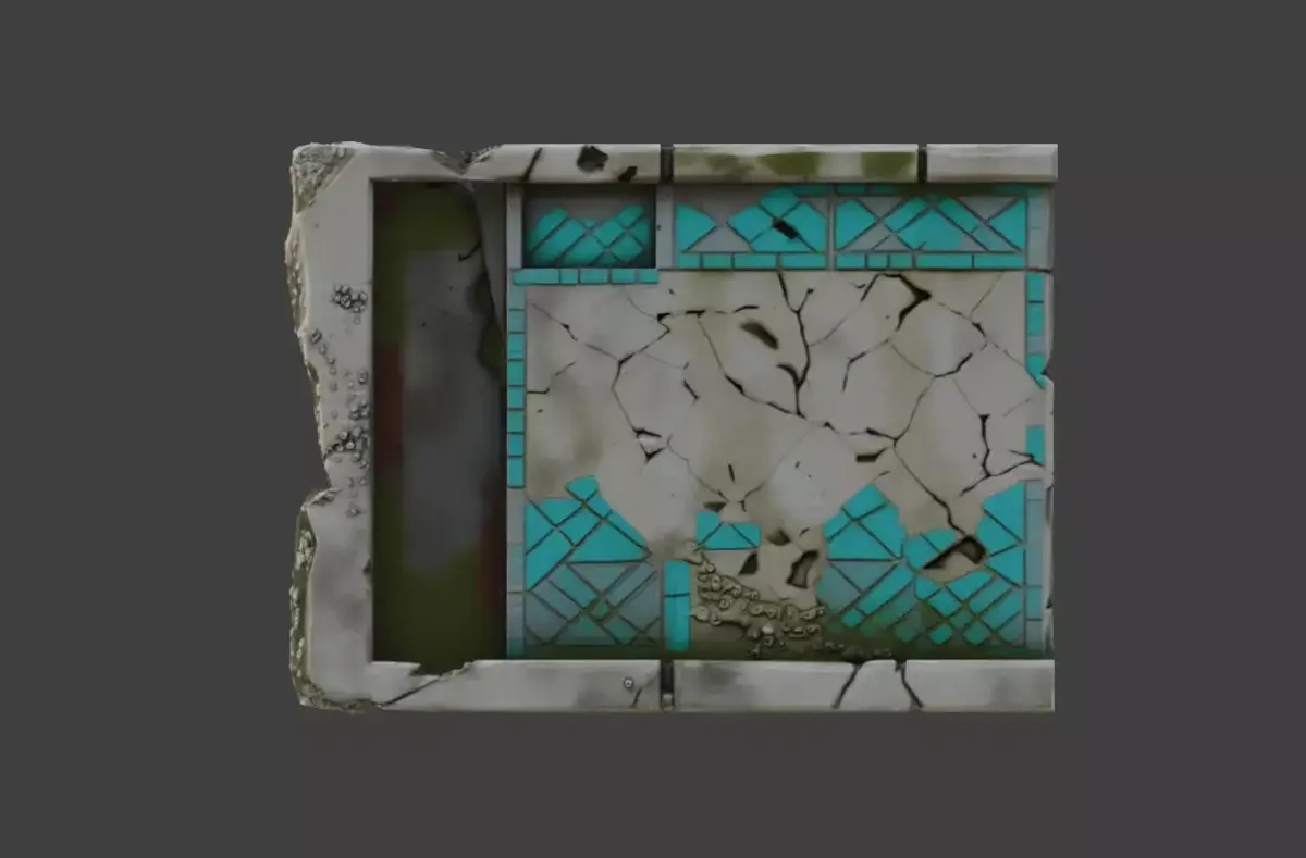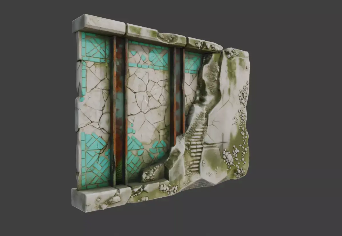 The Ancient Ruined Stone Wall with Turquoise enhances world-building by communicating history without words. It suggests forgotten rituals, collapsed empires, and hidden resources waiting to be rediscovered. Whether used in high fantasy, dark fantasy, or archaeological-inspired settings, this asset adds authenticity, mystery, and timeless atmosphere to any project.