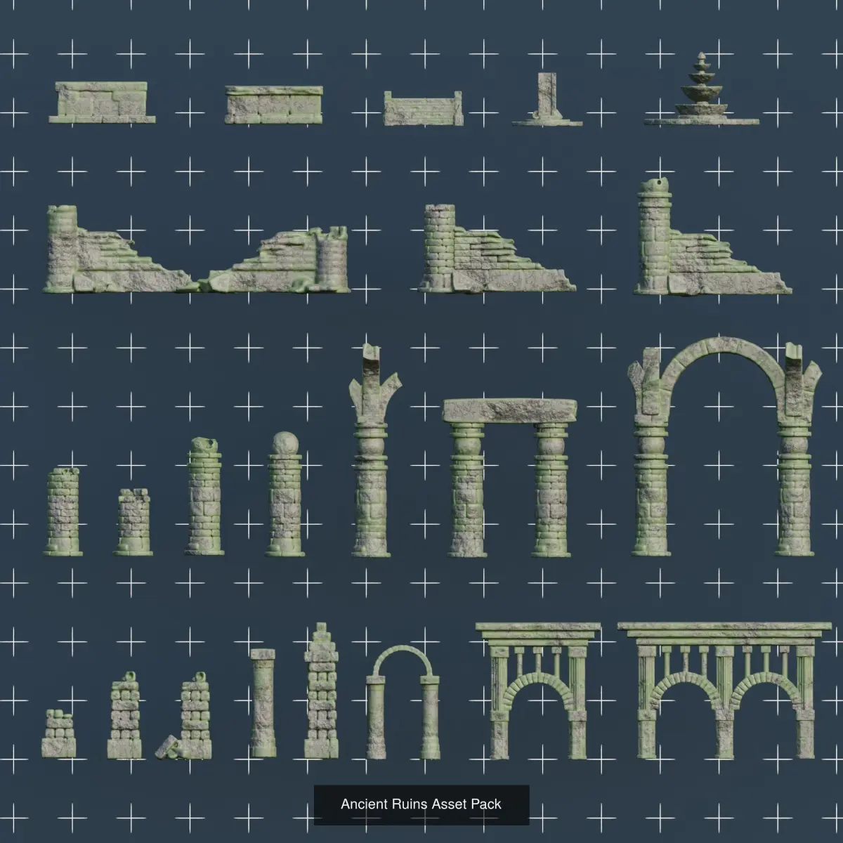 Asset packAsset pack of environmental props of an ancient ruins. 23 different models. Zip file contain FBX, GLB, GLTF, OBJ formats. Textures: Color map: 4096 x 4096 Roughness map: 4096 x 4096 Normal map: 4096 x 4096 for each model. Zip file has sepereta folders for each model (all textures included), but there is also one folder contain all models in one file.