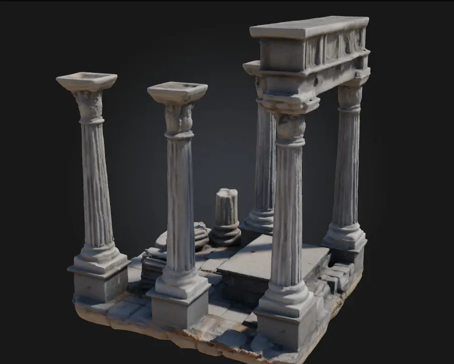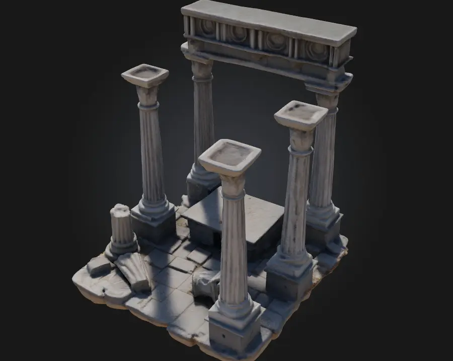 The Ancient Ruins Scene model immerses viewers in the decayed majesty of a forgotten world. Ideal for fantasy RPGs, archaeological visualizations, or post-apocalyptic landscapes, this environment tells a story through every broken pillar and crumbling wall.