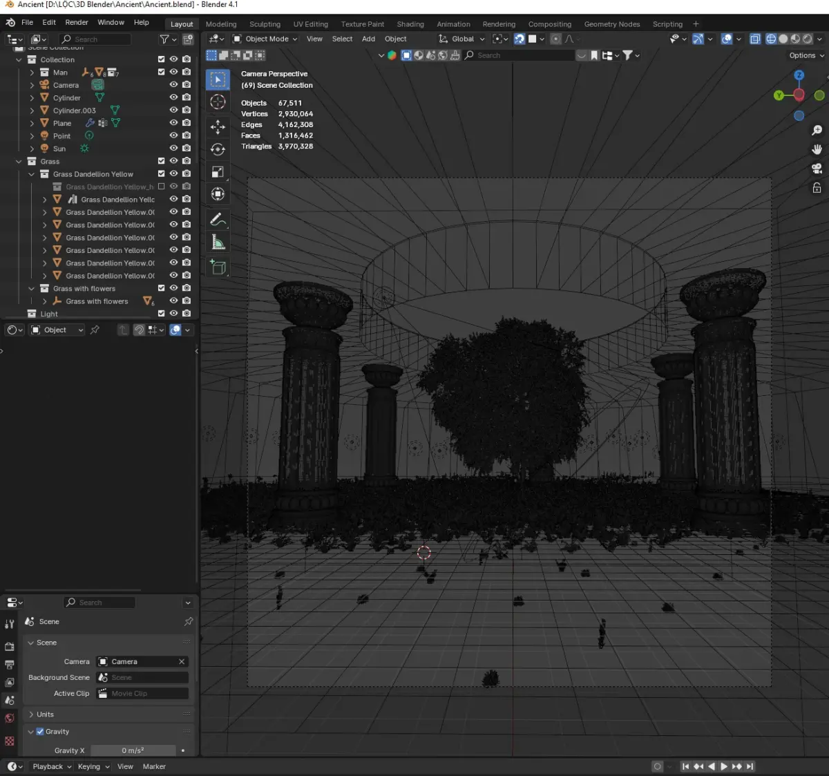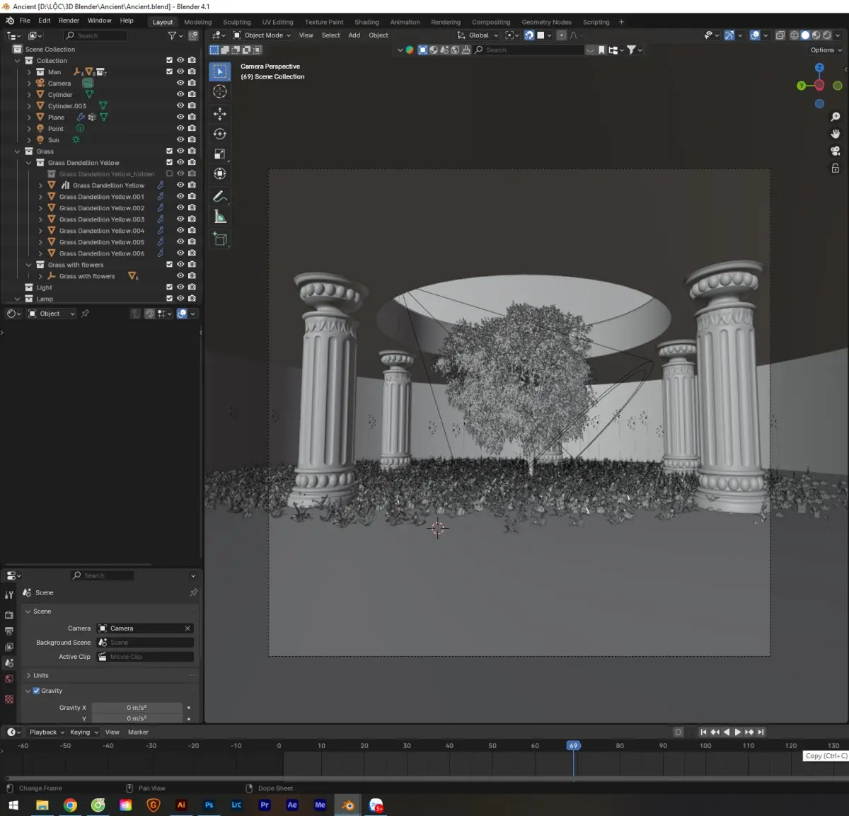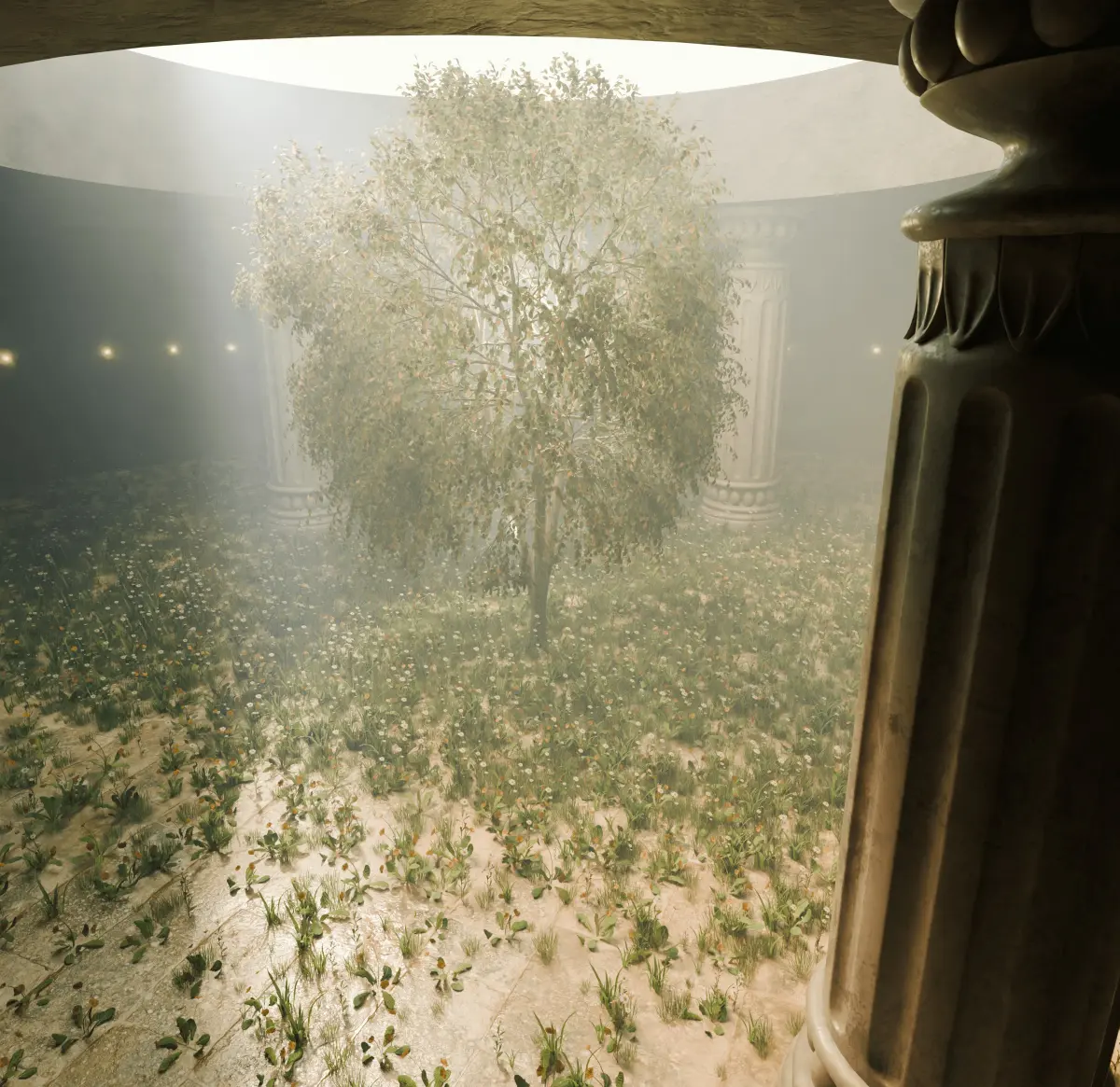 Ancient scene with simple motifs including grass, columns, lights, lamps, etc.Your satisfaction is my pride, thank you!