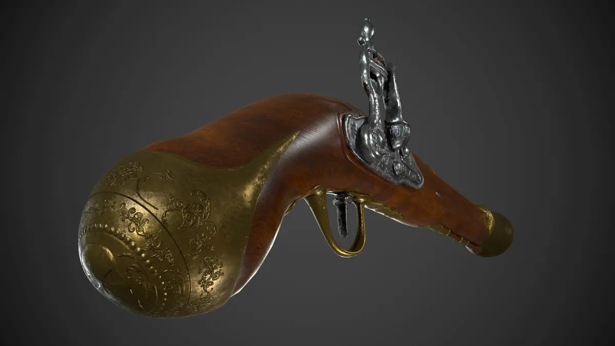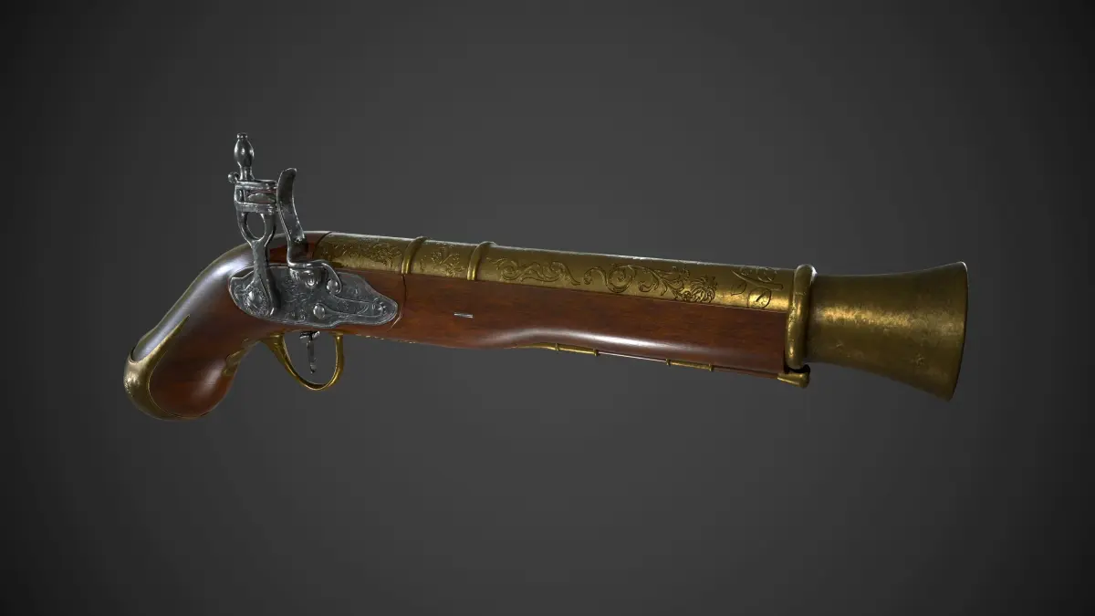 Its an ancient shotgun inspired art from Assassins Creed game. It comes with PBR Metal textures. And can be used for a game. Available In 4 Formats Maya Ascii, Binary, Fbx, And Obj. Its an antique ornamental designed or stylized 3d Ancient weapon. Hope You Like It.