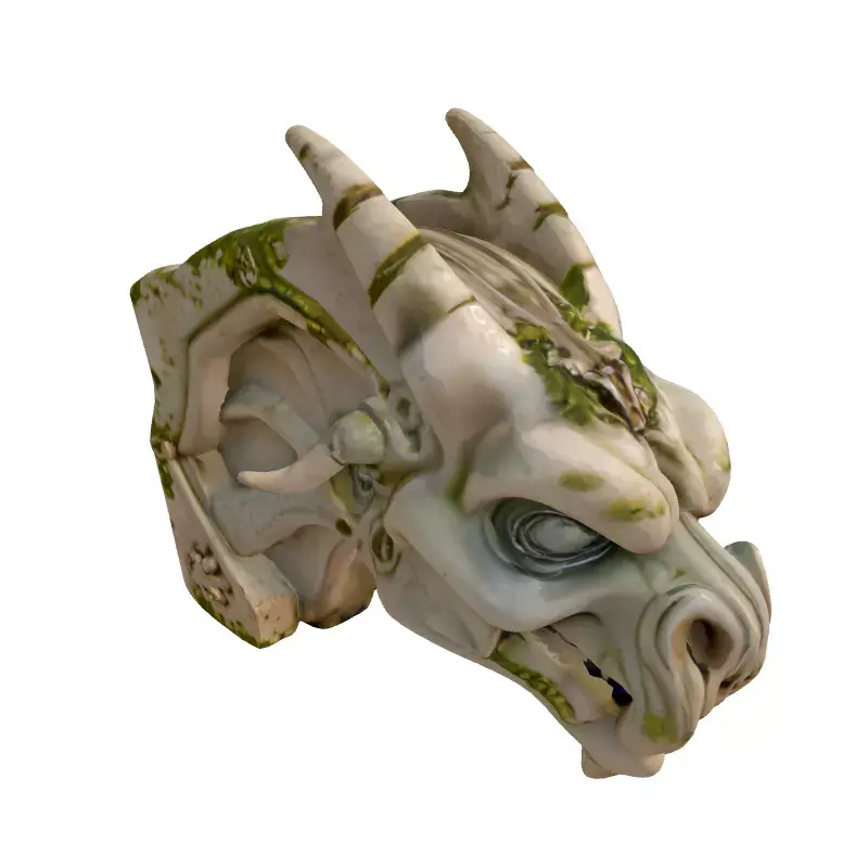 This highly detailed 3D model depicts an ancient, weathered dragon or gargoyle head sculpture, imbued with a captivating sense of history and fantasy. Crafted to resemble aged stone, it features intricate carvings and realistic moss growth, suggesting centuries of exposure to the elements. This versatile asset is perfect for enriching a wide array of digital environments, from epic fantasy game levels and atmospheric architectural visualizations to immersive VR/AR experiences and high-quality digital art renders. Its imposing presence makes it an ideal focal point for ruined temples, gothic castles, mystical gardens, or as a standalone collectible within a virtual museum. The model is meticulously designed with high-resolution PBR textures, ensuring stunning visual fidelity across various lighting conditions and rendering engines. Its clean, optimized topology makes it suitable for both static high-resolution renders and demanding real-time applications where visual quality is paramount. The intricate details of the scales, horns, and teeth are carefully sculpted, providing depth and realism to the stone surface. Fully UV unwrapped with non-overlapping UVs, it facilitates seamless texture application and customization. This asset is available in multiple widely supported formats including GLB, OBJ, FBX, USD, DAE, ABC, and PLY, ensuring broad compatibility with most 3D software and game engines. It is also suitable for high-quality 3D printing, allowing for the creation of unique physical sculptures. Whether for game development, film production, or architectural projects, this dragon head model offers exceptional detail and aesthetic appeal.