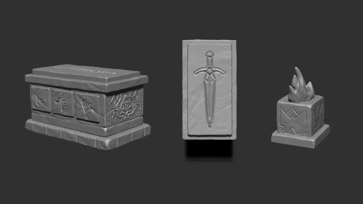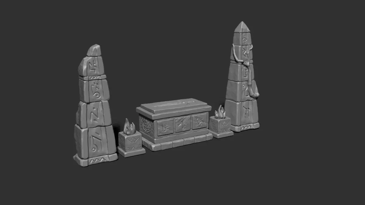 Stone column with runesStone colum with runes damagedStone column with runes ruinedStone column with runes with ivyStone column with runes seperated piecesStone column plainStone column plain with ivyStone brazierStone Tomb