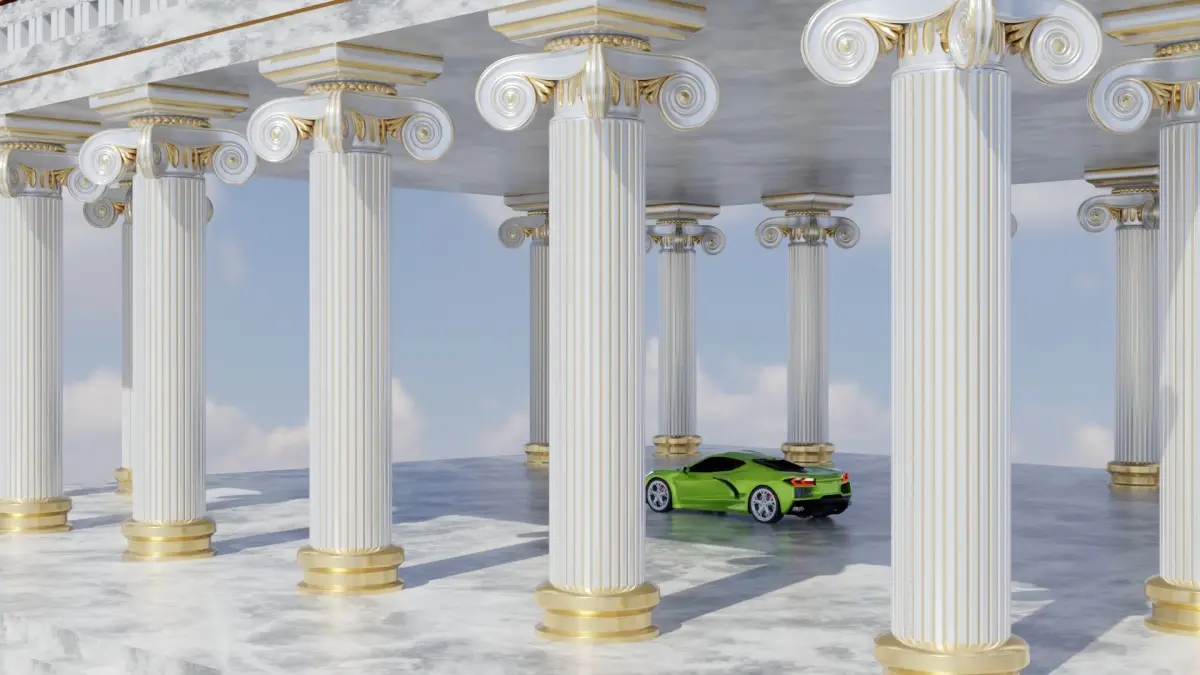 Ancient temple showroom made in blender 3d for your models!The showroom goes without the car