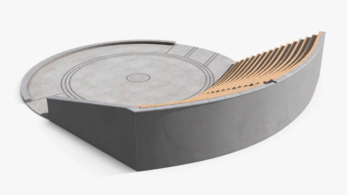 Ancient Urban Amphitheater is a three-dimensional model of ancient semi-circular amphitheater that featured tiered seating facing a central stage, and that used for performances, gatherings and more.