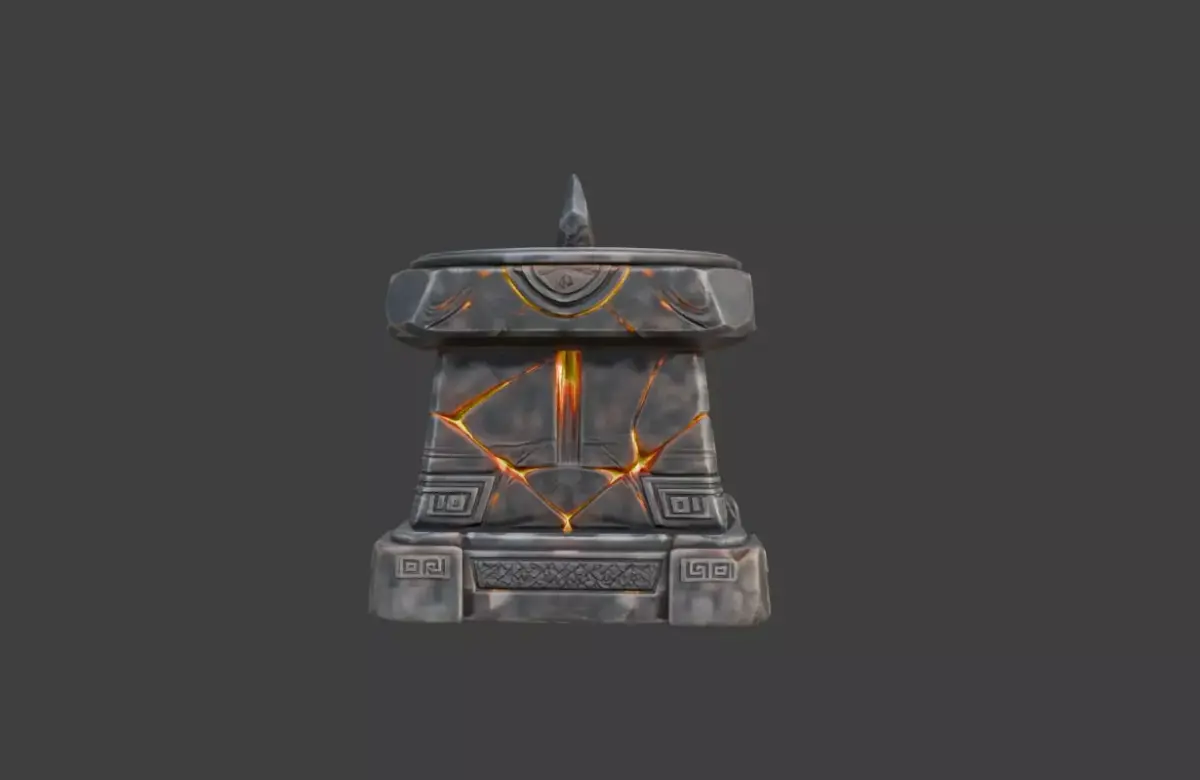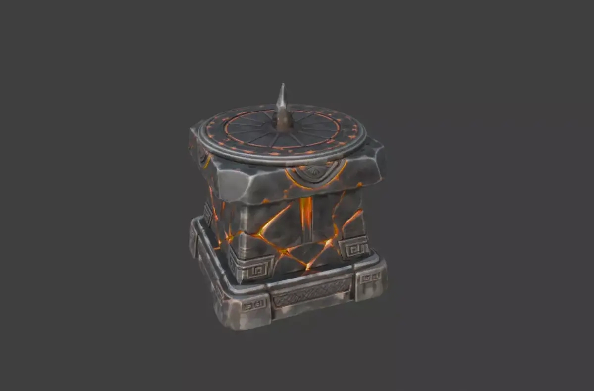 Technically, the model is well-suited for modern real-time workflows. Its sculpted stone damage, engraved patterns, and lava cracks are optimized for PBR rendering, allowing realistic interaction with dynamic lighting. The emissive glow from the molten fissures enhances atmosphere in dark environments, making it ideal for cinematic scenes, fantasy RPGs, action-adventure games, and high-quality renders. The asset maintains clarity and detail at multiple distances, functioning equally well as a hero prop or a strong background landmark.