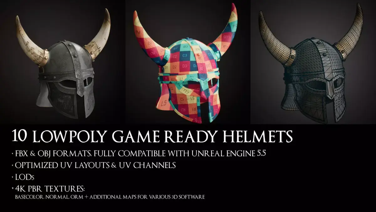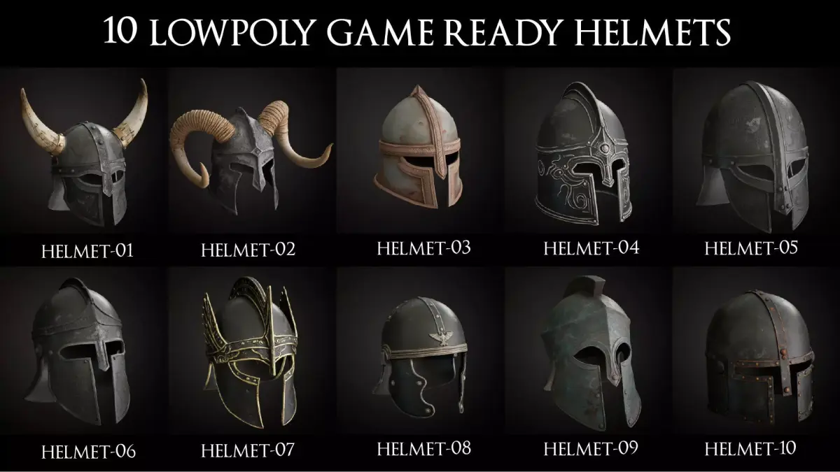 10 Low Poly Epic Ancient War Helmets