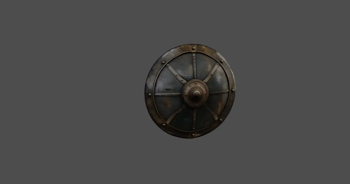 This 3D model showcases a meticulously crafted ancient warrior's shield, featuring intricate detailing and a weathered, battle-worn texture that adds to its authenticity. The shield is designed with a circular form, reinforced with metallic bands radiating from the center to the edges. Each band is adorned with rivets and ornate engravings, giving it a historically accurate and visually captivating appearance. The central boss protrudes slightly, emphasizing its functionality for deflecting strikes while enhancing the overall aesthetic.The surface of the shield displays a combination of aged metal and worn wooden textures, creating a realistic depiction of a shield that has seen numerous battles. Scratches, dents, and subtle rust effects on the metal parts highlight the attention to detail, making this model ideal for close-up renders or in-game cinematic scenes. The outer rim is decorated with elaborate engravings, evoking cultural symbolism often found in ancient armor designs.This model is perfect for use in video games, historical reconstructions, fantasy films, and virtual reality experiences. It can seamlessly integrate into medieval, Viking, or fantasy-themed projects, providing a high-quality asset that enhances the realism and immersion of your scenes. Both the gmb and fbx formats are available, allowing compatibility with various 3D software platforms.The shield is downloadable in gmb format with textures included, ensuring immediate usability. It is also available in fbx format for compatibility with most game engines and animation software, making it an excellent addition to any 3D asset library.