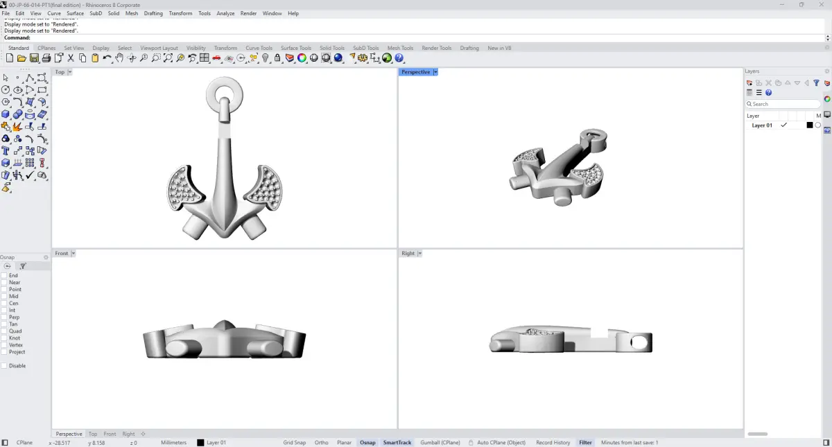 Files & Compatibility• Ready for 3D printing in wax.• Formats provided: 3DM (editable), STL (ready for 3D printing), FBX, and OBJ.• The downloadable ZIP file contains all available file versions.• The main .3dm file includes editable curves and profiles for full customization.• The STL file has been carefully optimized and professionally tested in our CAD-CAM production unit.• While the STL is fully production-ready, please note that due to the wide variety of 3D printers and proprietary slicing systems available on the market, we do not provide universal printer-specific supports. Each printer and material combination may require tailored support configuration by the user.• Our team uses a Solidscape S390 wax 3D printer in-house and has successfully printed, cast, and finished this piece through all stages of production—from initial design to polishing. This model is not just a conceptual design, but a fully functional jewelry component, developed collaboratively between our design, 3D printing, casting, and finishing teams.• Every dimension, wall thickness, prong angle, and gemstone seat has been tested for real-world application in fine jewelry production.