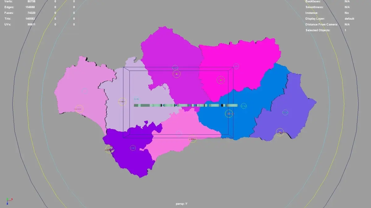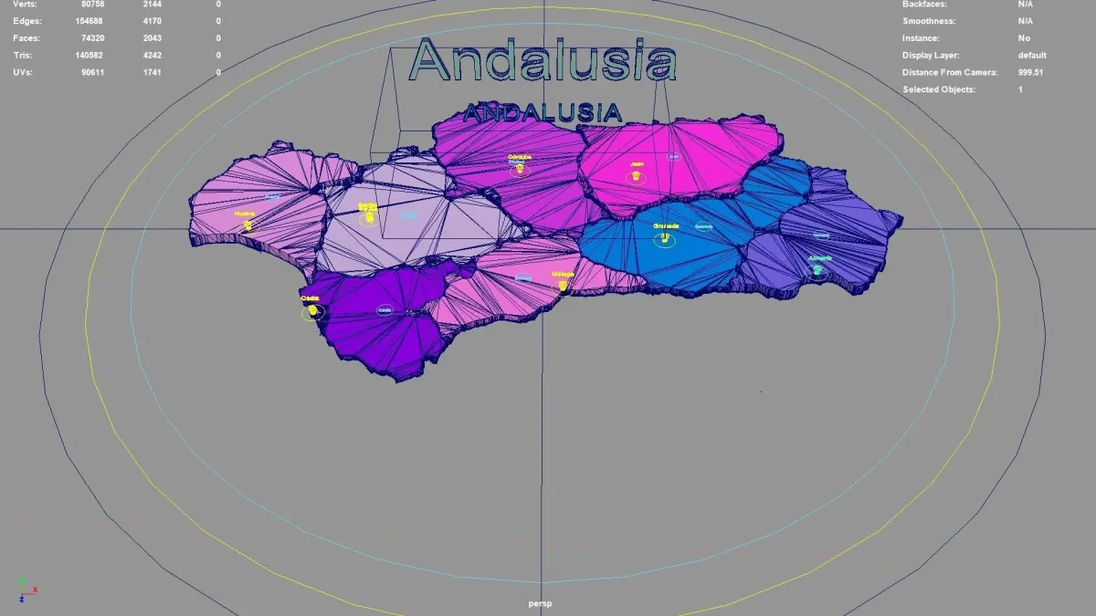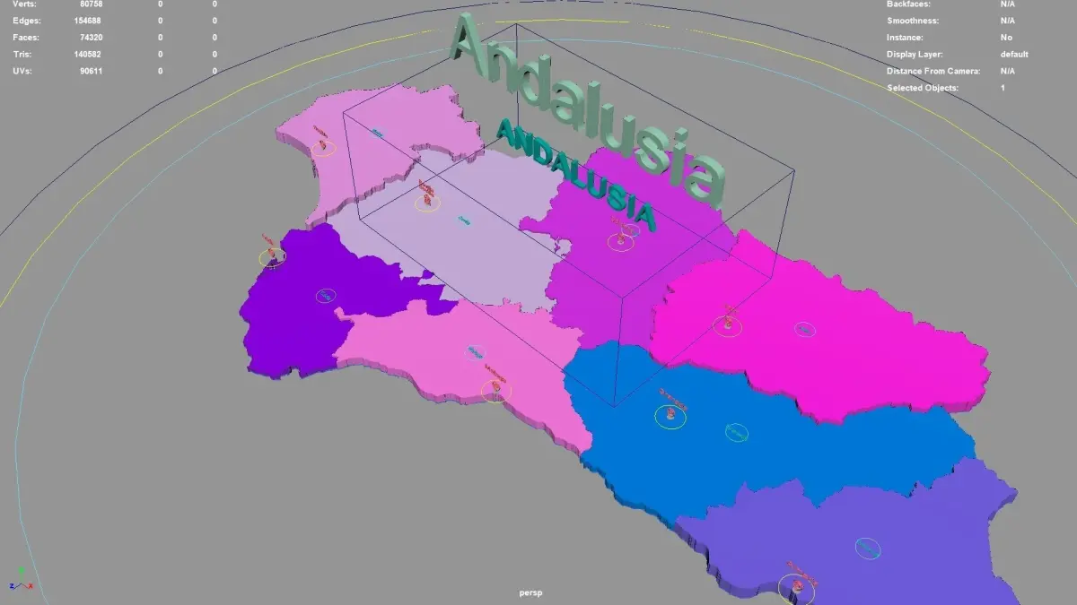 Andalusia regions : The model is divided according to the administrative region of Andalusia. Each region is clearly separated so you can easily isolate it or change the colors. Names are also editable and separate.