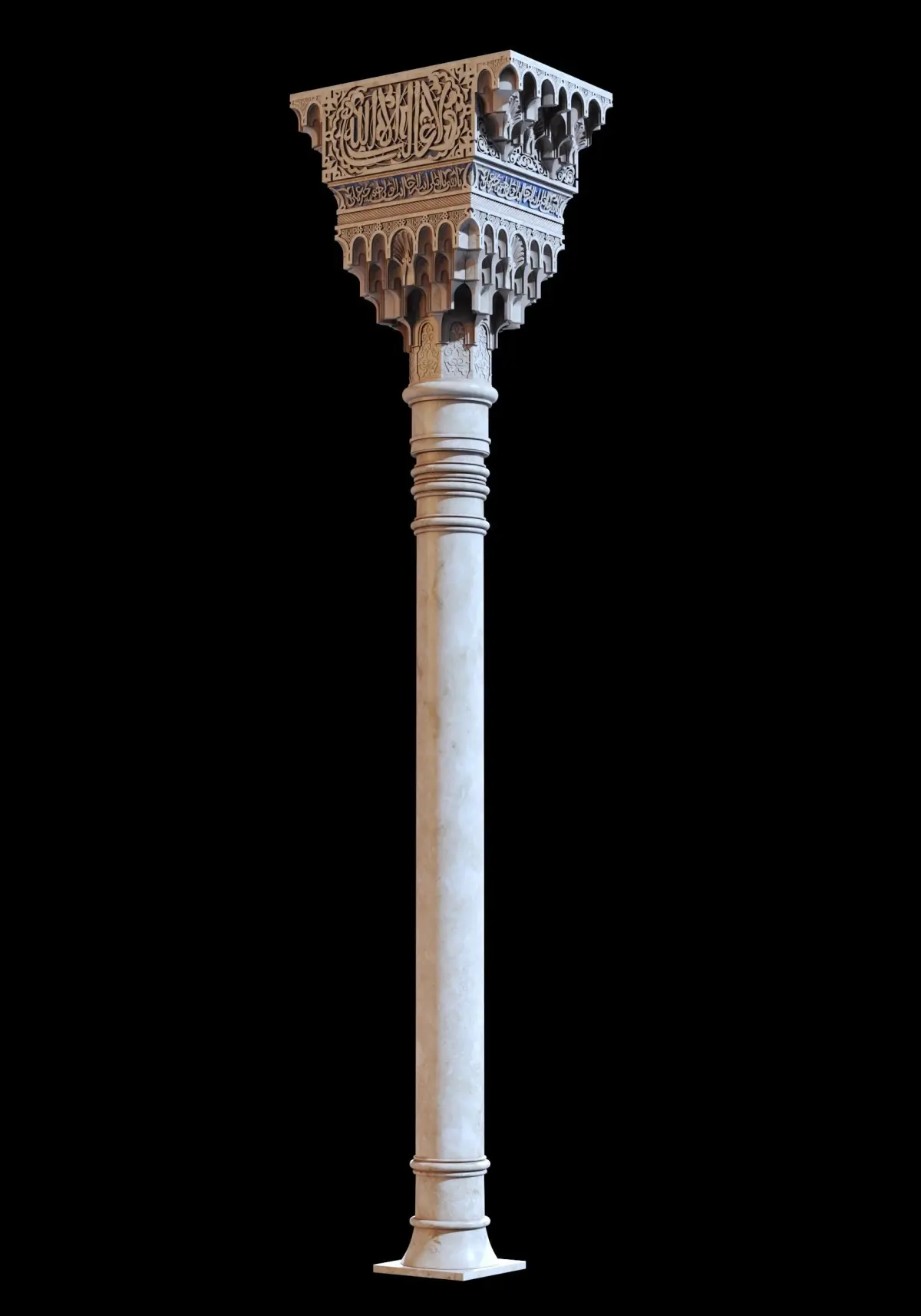 Here is an Andalusian-Style muqarnas column from Alhambra in Granada, Andalusia, Spain.It's a high-poly model with alot of details..and also Unwrapped UVs, so you can easily assign your own texture on the model and get a perfect texturing result.