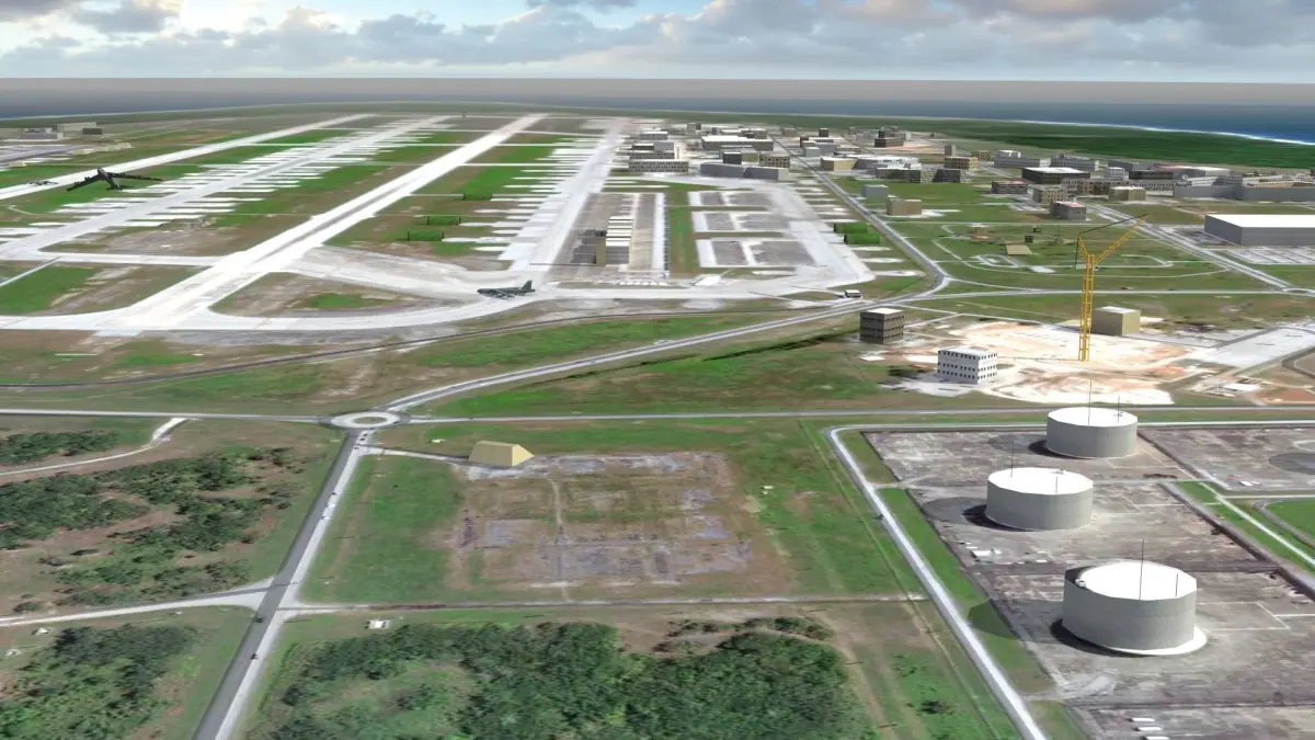 Anderson US Airbase Guam. Includes B52 heavy bombers, hangers, bunkers, buildings and roof detail. Great multipurpose 3D model. Native format is 3ds Max. No plugins required to achieve renders shown above. Texture maps are located in their own zip download. Model built to real world scale - units are meters. Skybox not included.
