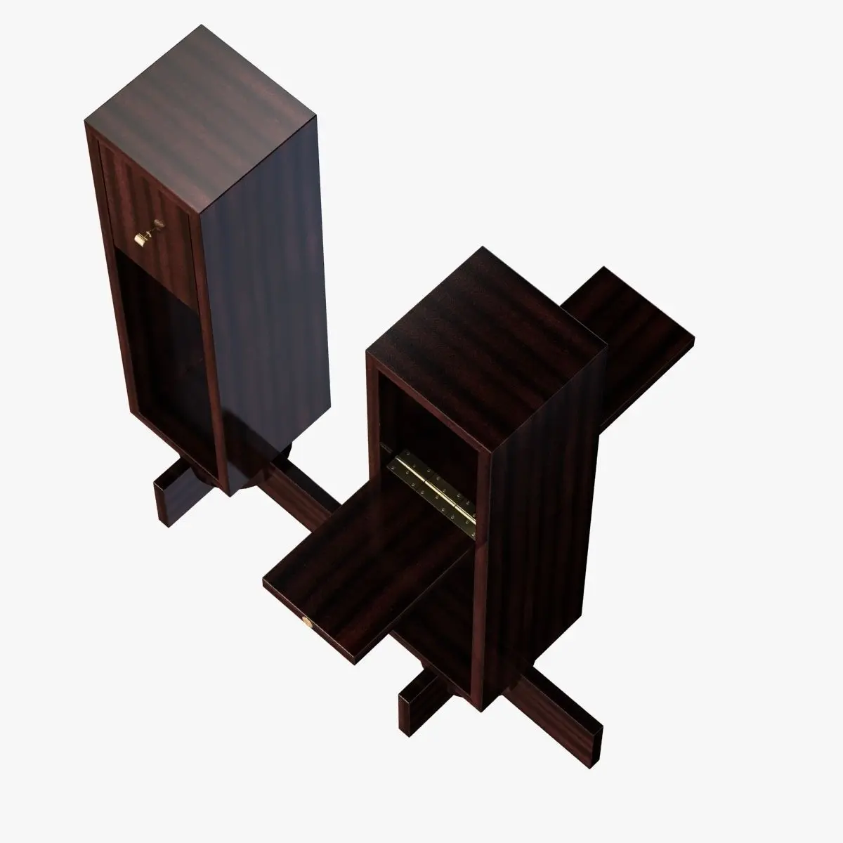 side table with two doorsa side table in mahogany with two doors id rosewood.height 29.52'width 14.96'depth 10.23' in position closed and 20.67' in position opened.circa 1930
