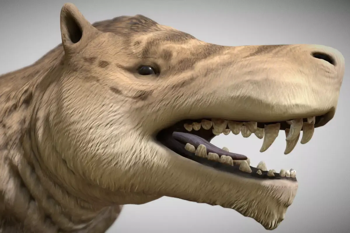 Andrewsarchus mongoliensis was a massive, hoofed predator that lived during the Eocene epoch. Known from a single giant skull over 2.5 feet long, it’s one of the largest terrestrial mammalian carnivores ever discovered. With powerful jaws, crushing teeth, and a build somewhere between a hyena and a wolf on steroids, Andrewsarchus may have scavenged or hunted across coastal plains and estuaries.
