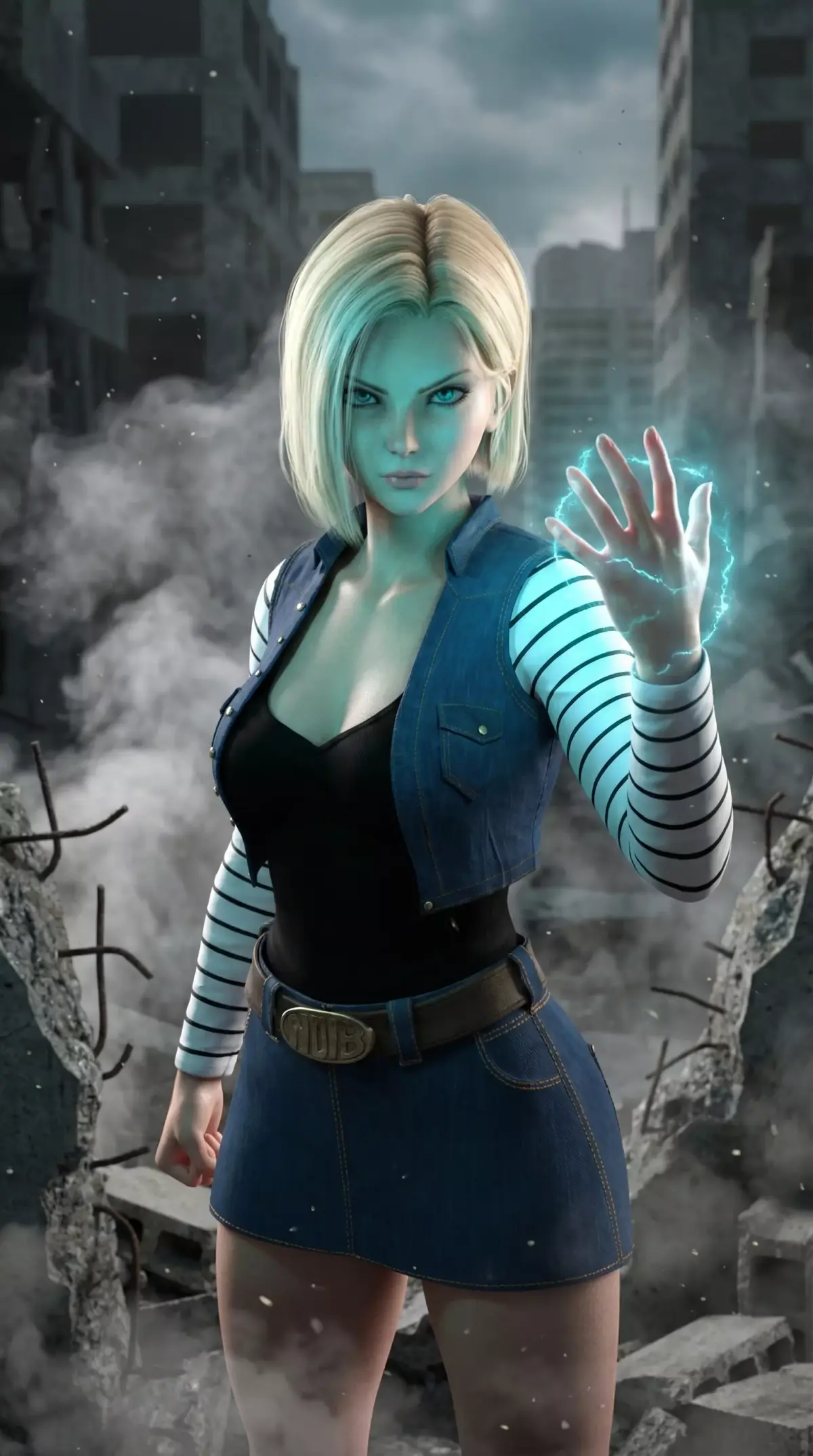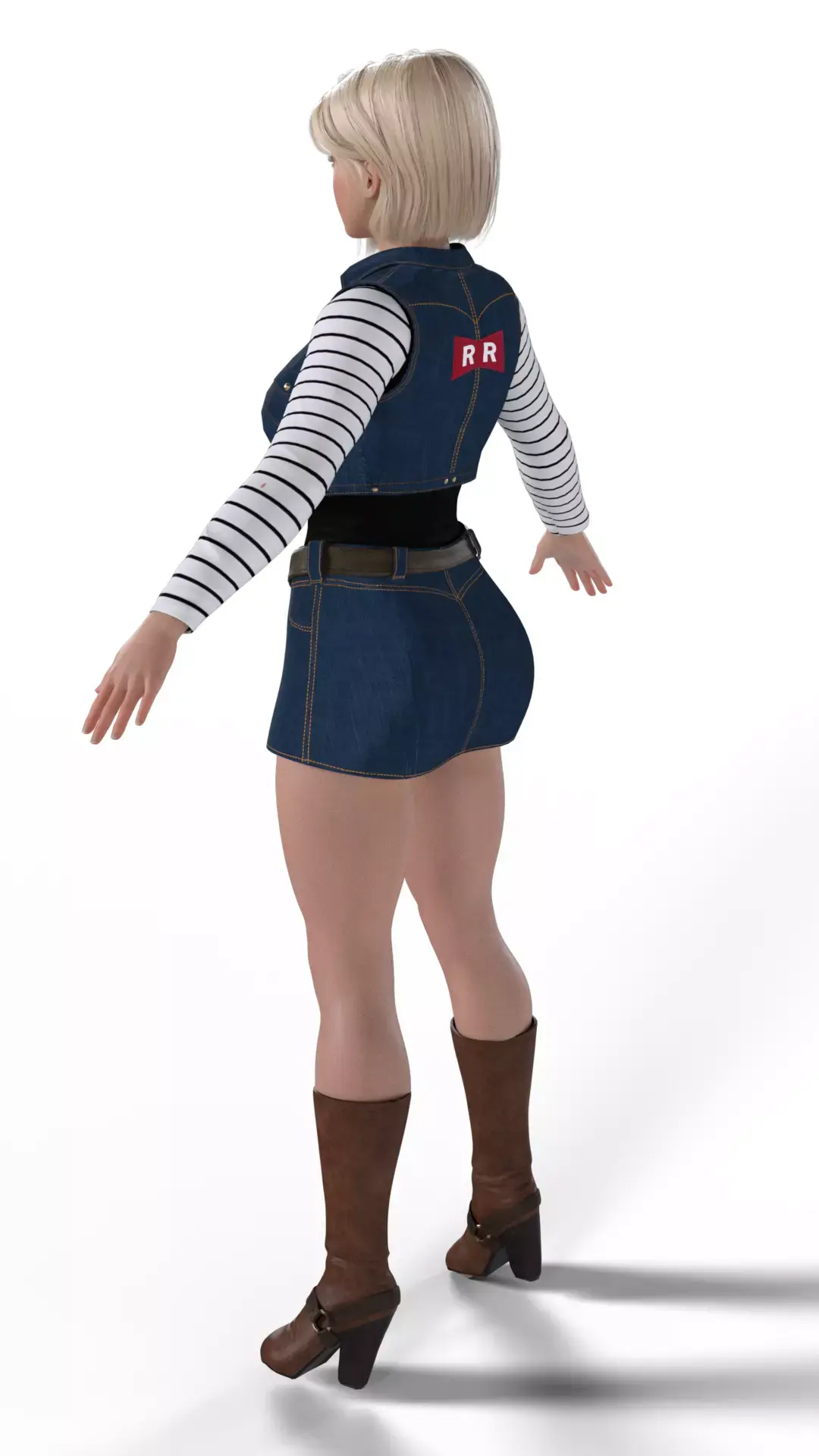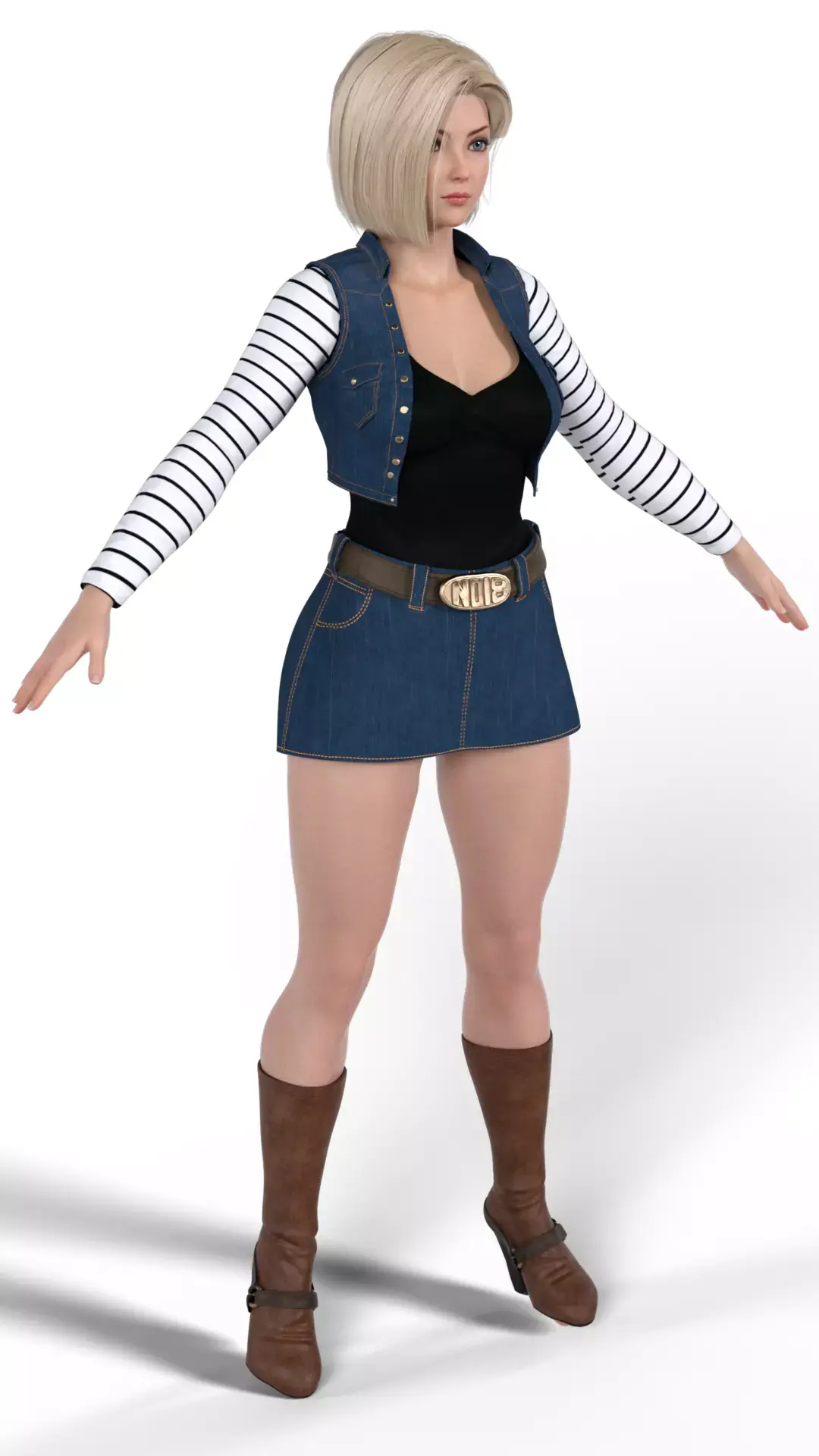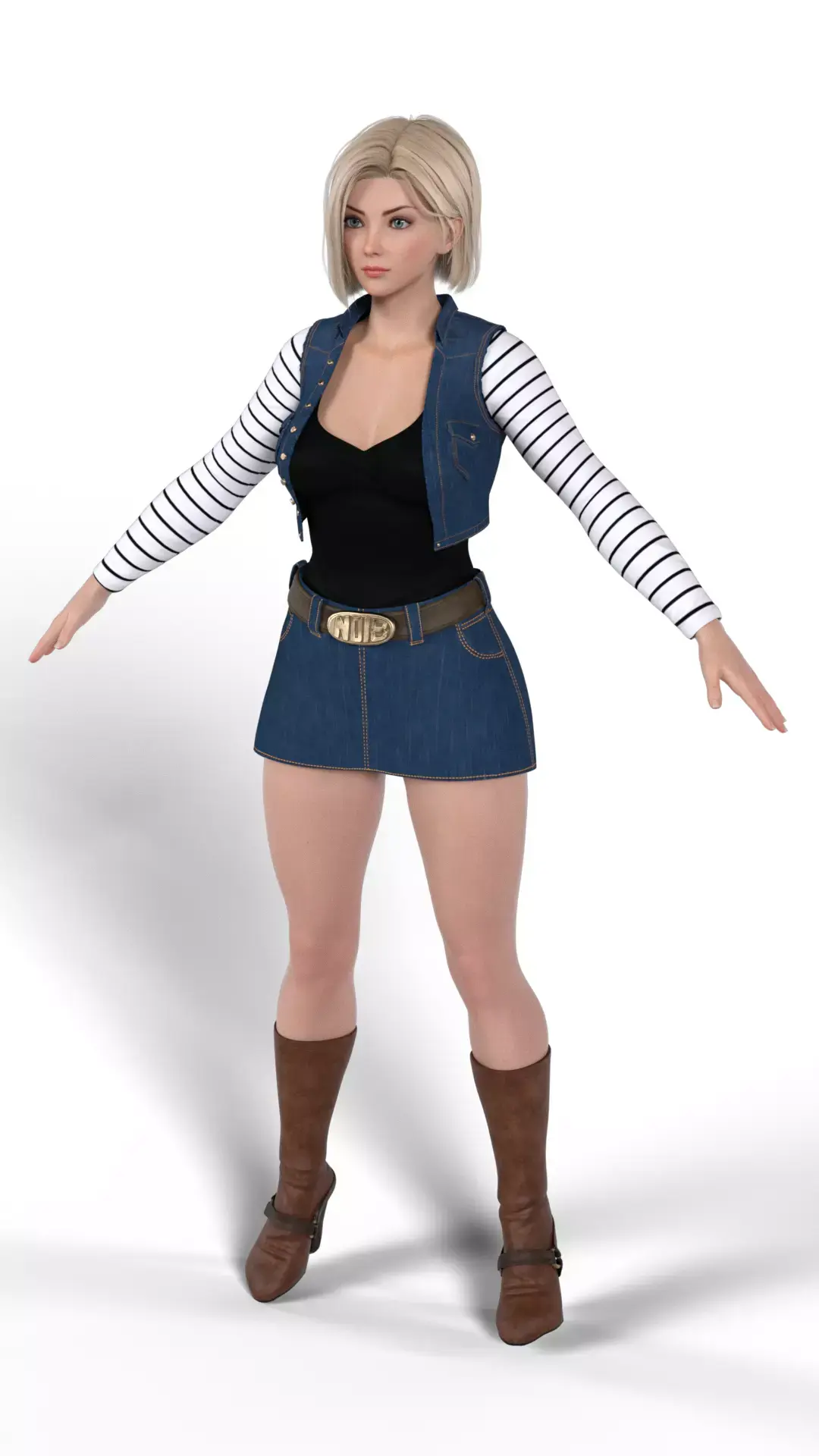 Bring the formidable power and cool style of Android 18 from Dragon Ball Z into your 3D projects. This high-detail character model captures the iconic look of the powerful Z Fighter in her classic casual attire, blending anime inspiration with realistic PBR rendering.