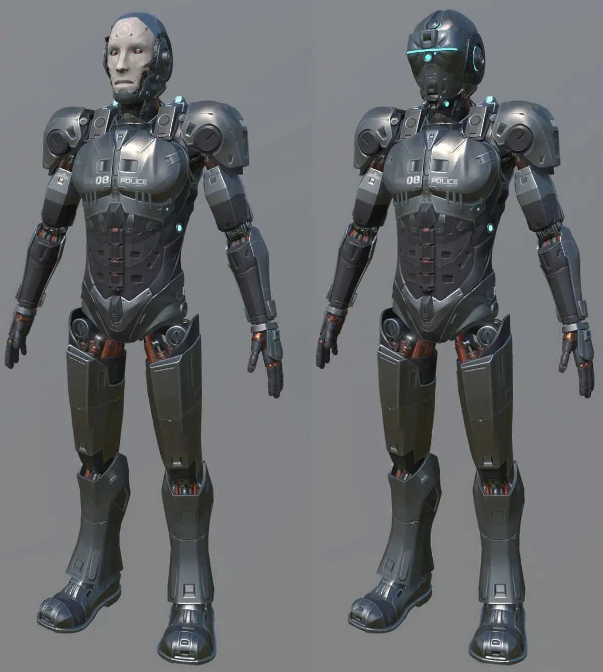 Android Sci-fi Police Robot with opening and closing masks 3D model + textures.This is a Qualitative 3d model of a special Cyborg android robot Unit that can be used in Animation/Films/Games.