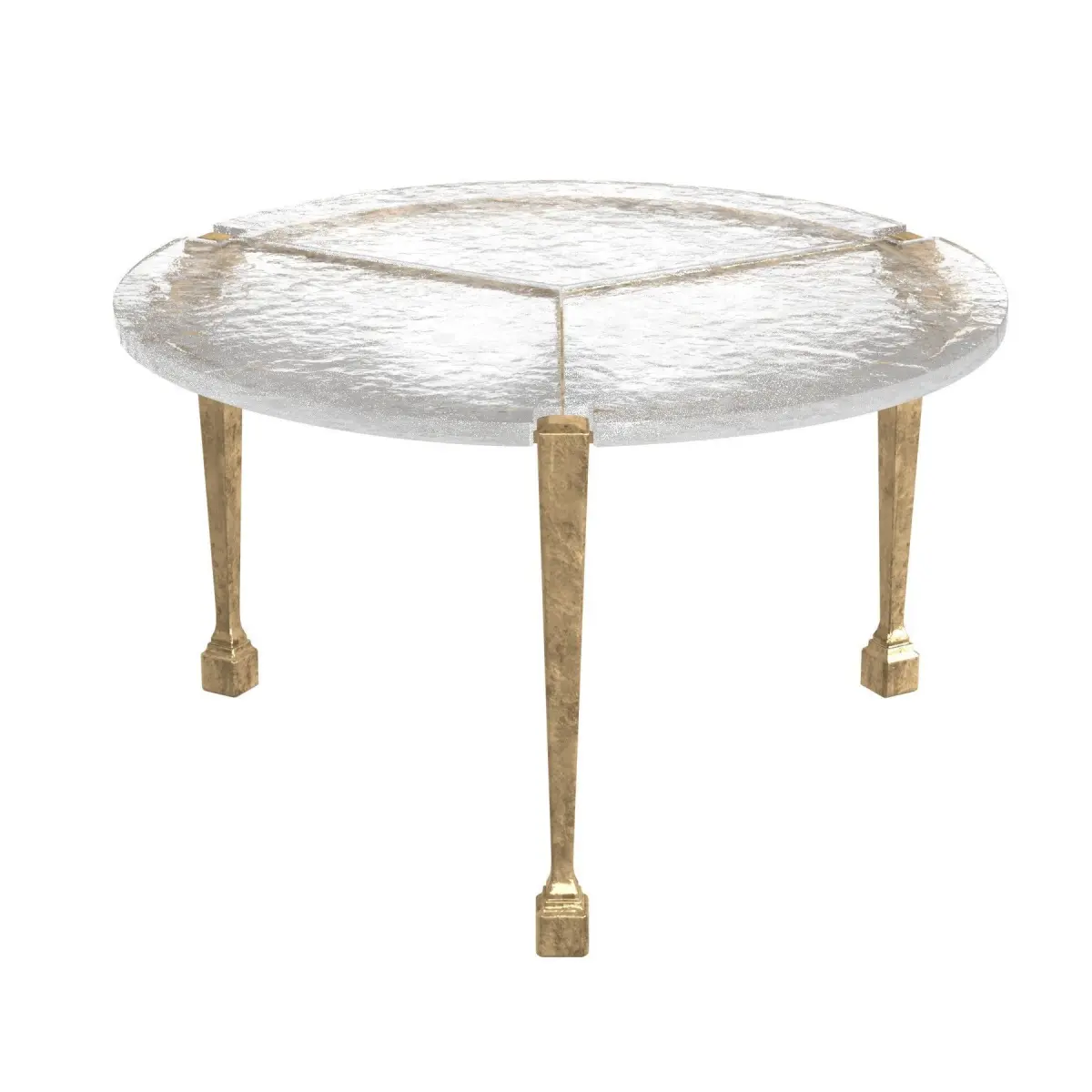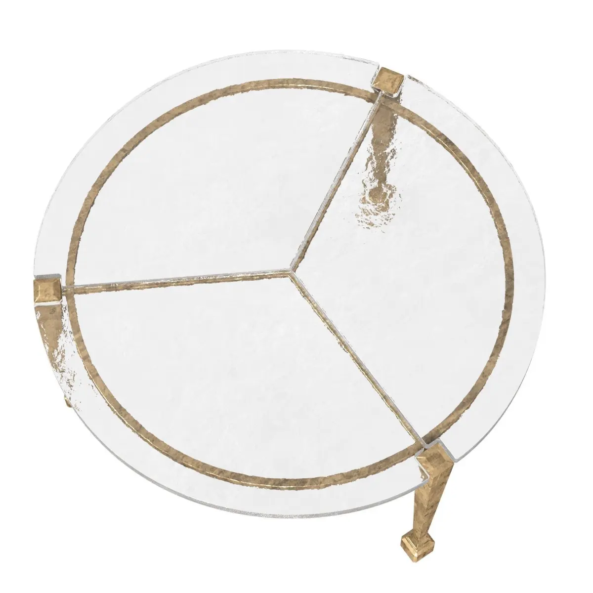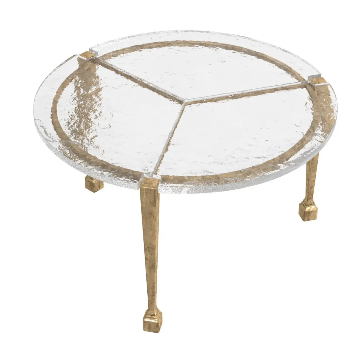 Andrу Arbus Round coffee tableglass top hand blow cast sculpture brass legs three metal