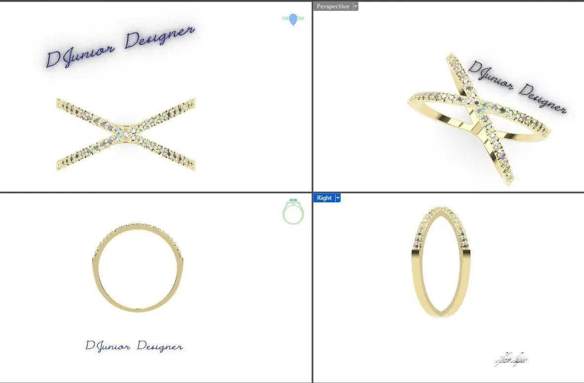 anel de formato de X com brilhantes de 0,05pts