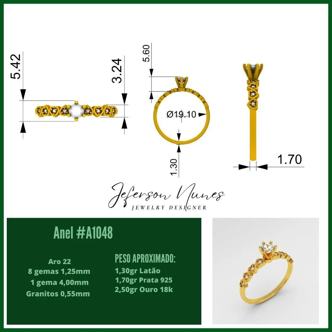 Peso Latão 1,30gr Peso prata 1,70gr Peso ouro 18k 2,50gr