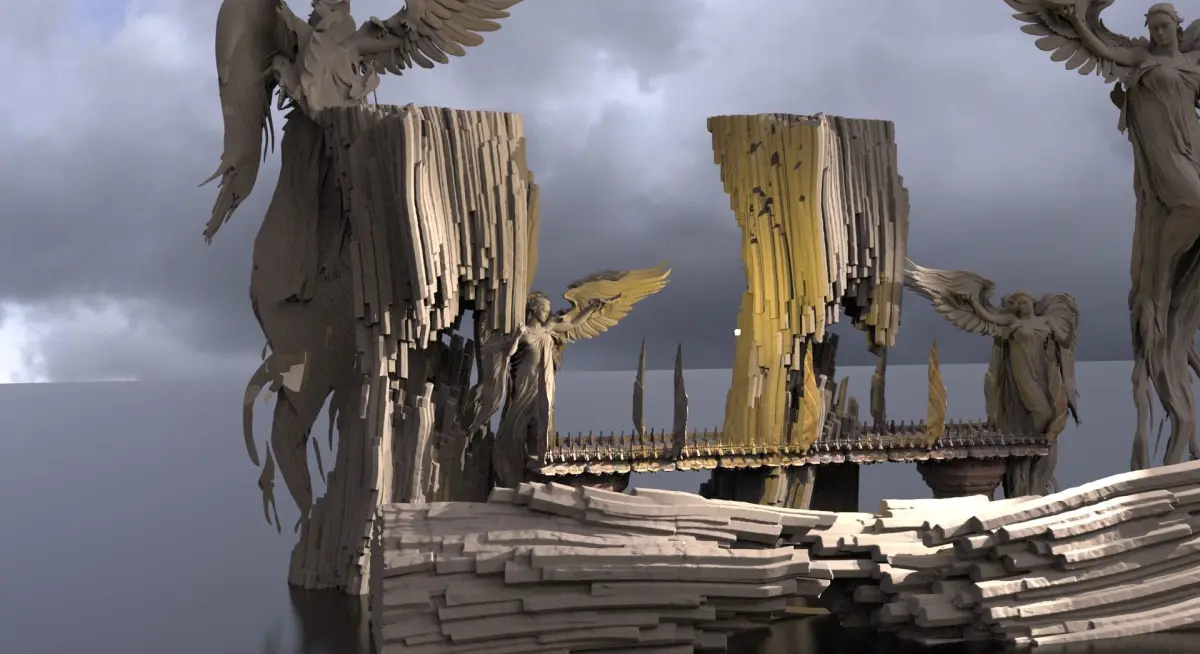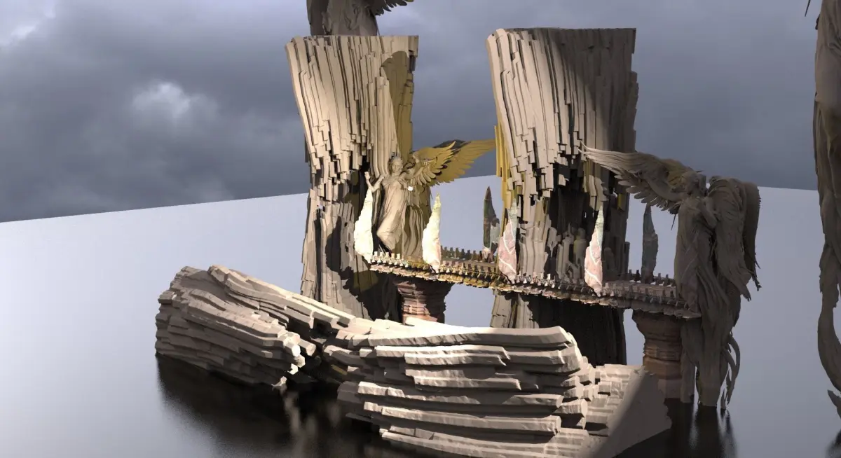 Angel Ascension Colossal cliff 3D! !! tiled textures provided UV mapped except statues and giant rock 3D!