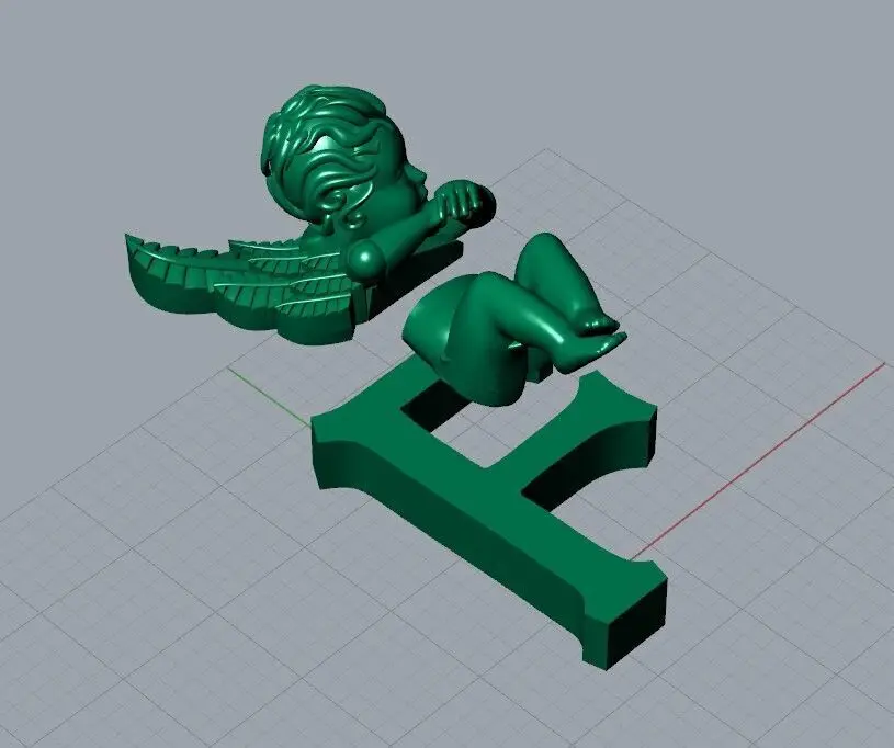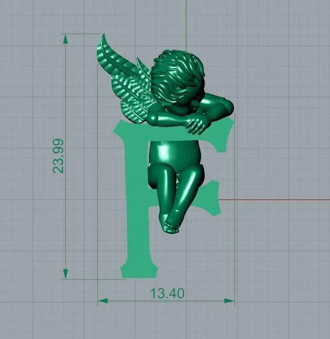 Angel Pendant with Letter “F” - 3D Model for Jewelry Design