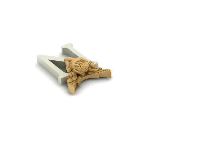 Angel Pendant with Letter “N” - 3D Model for Jewelry Design