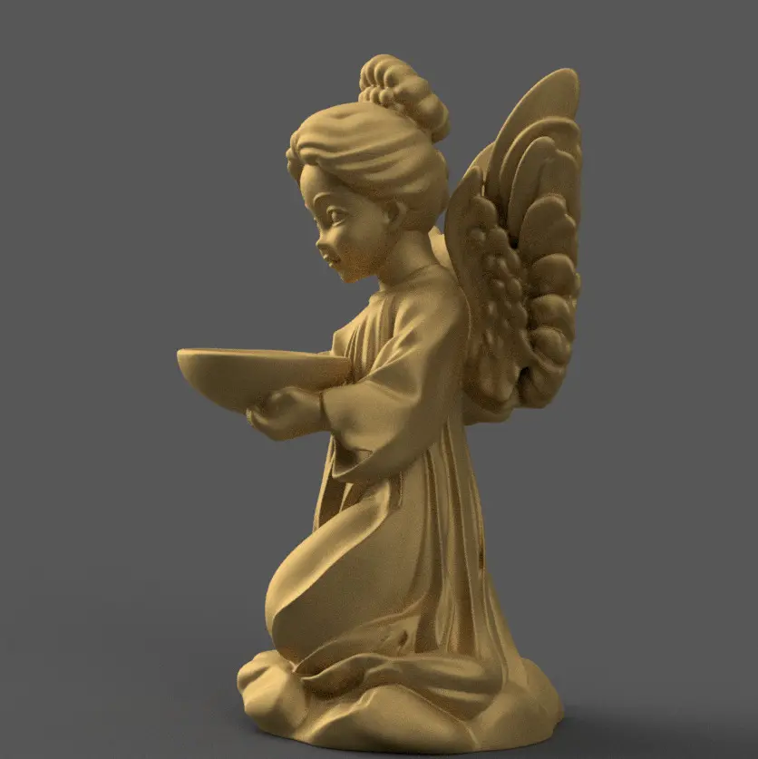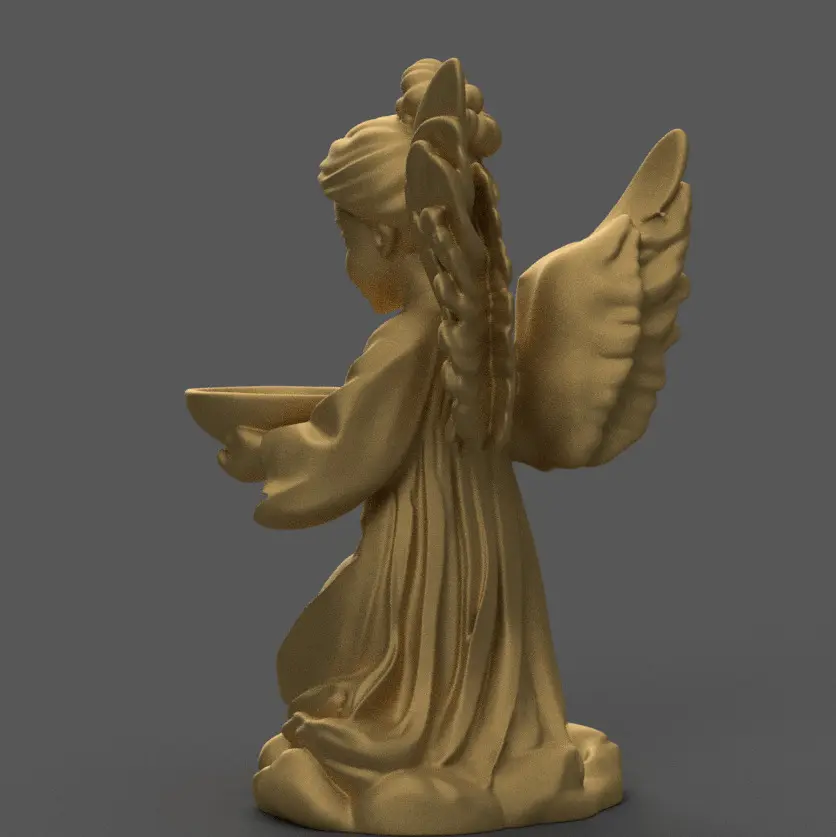 This 3D model shows an angel holding a bowl, perfect for decoration. It can be used as a centerpiece, a candy holder, or a unique decorative item for your home. The design is detailed and elegant, making it ideal for home decor or as a thoughtful gift. The STL file is ready for 3D printing and simple to use.