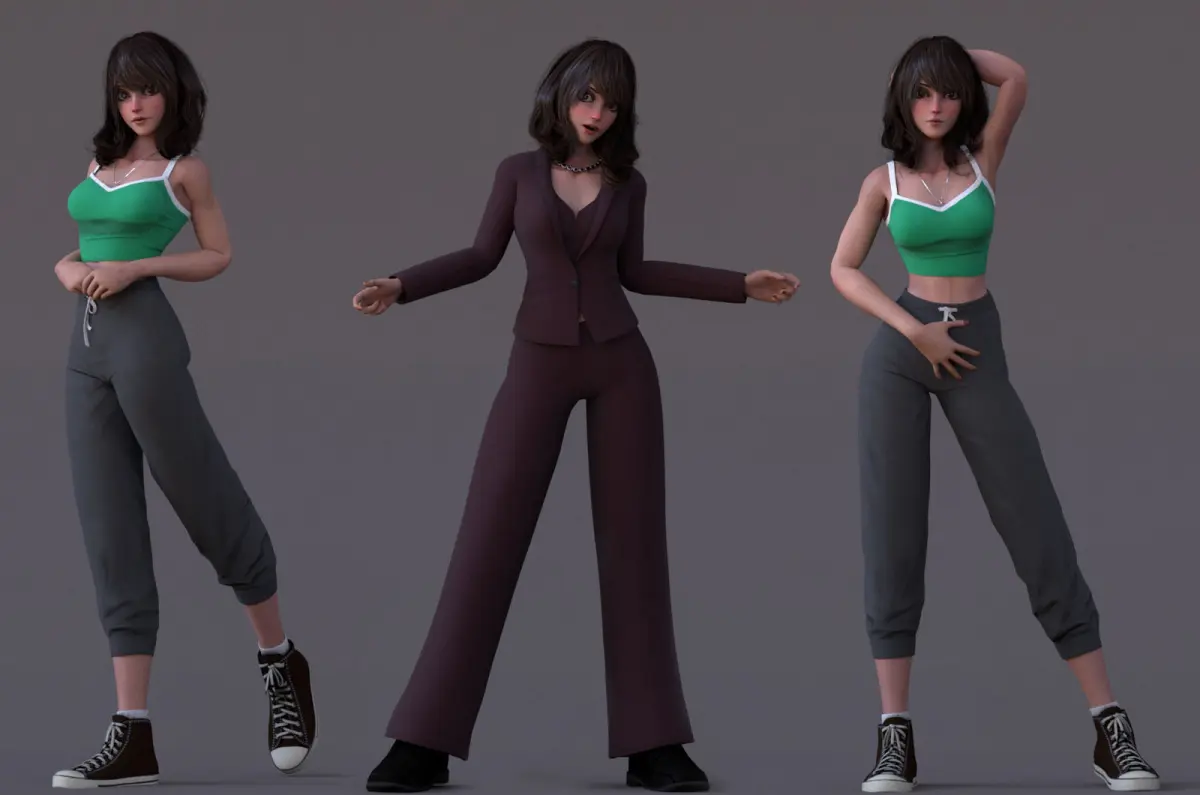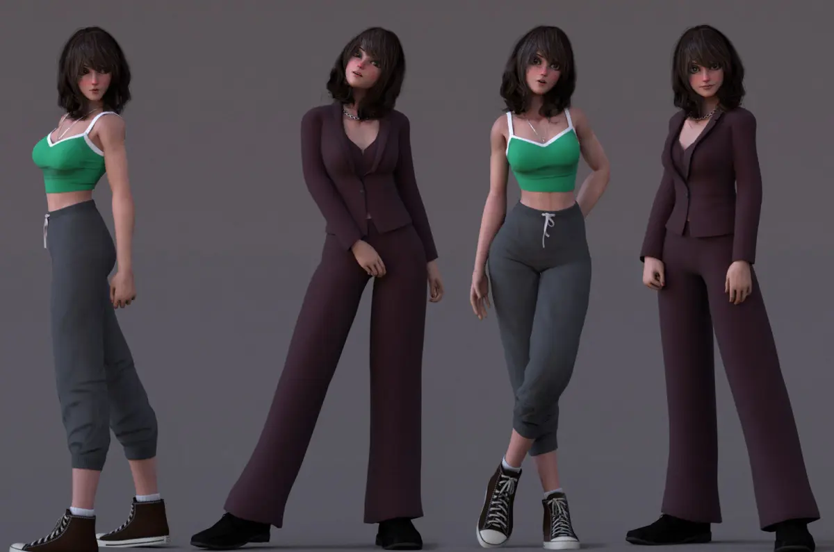 This model contains 11 separate objects(with 2 outfit)