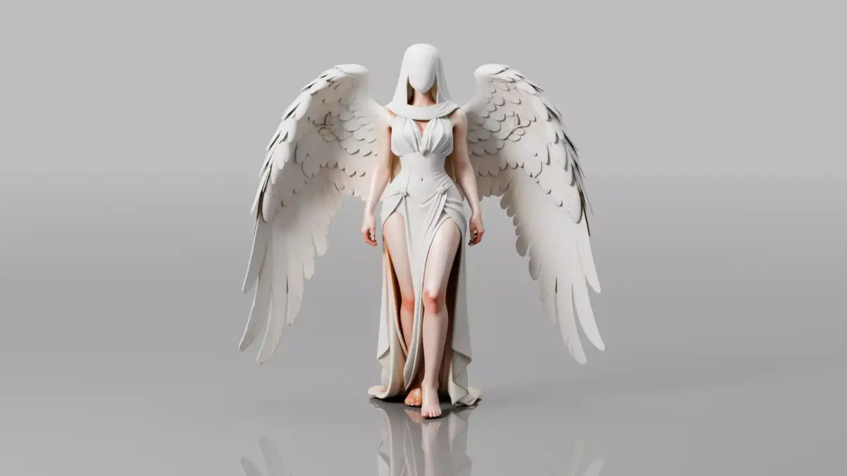 The character includes large stylized angelic wings with clean feather structure, designed to remain readable from multiple angles while maintaining a balanced silhouette. The outfit follows the body shape without obscuring form, allowing for clean deformation during animation. This asset is ideal for use as an angelic NPC, guardian, divine entity, or cinematic character in fantasy and mythological settings.