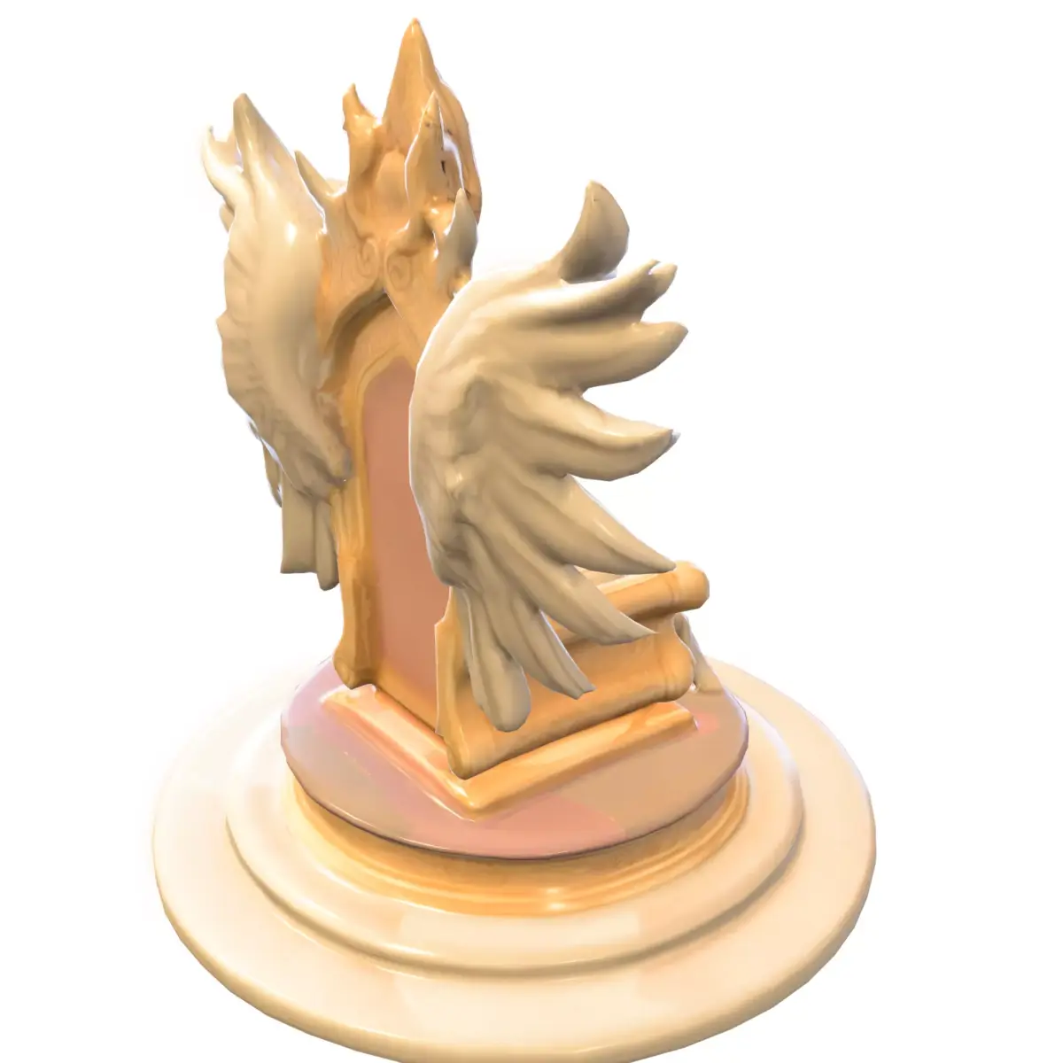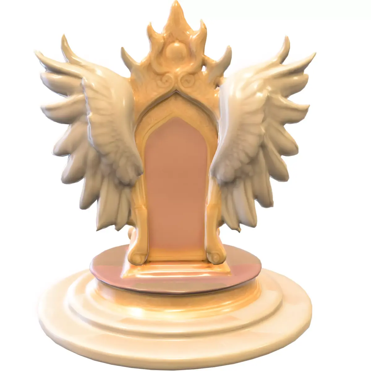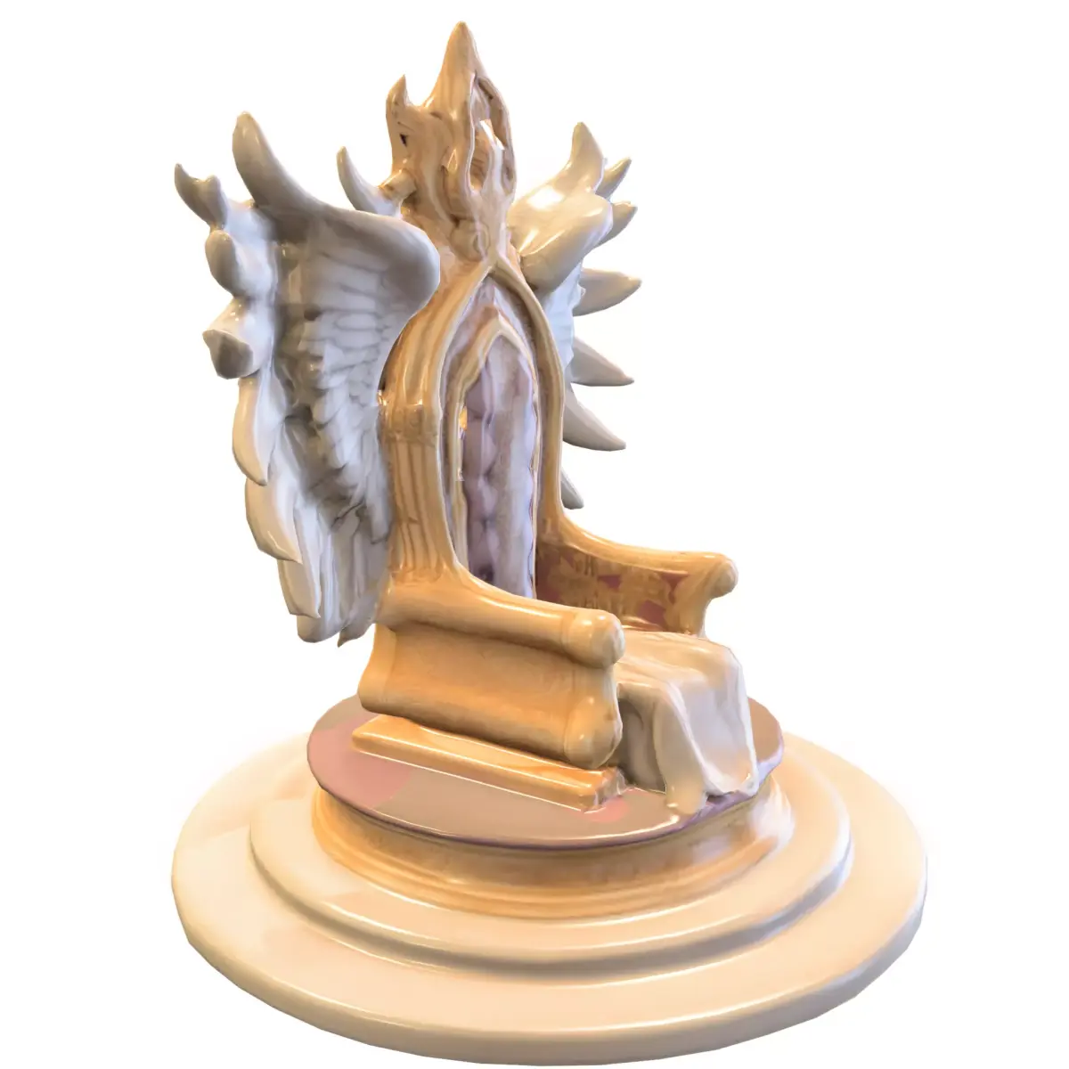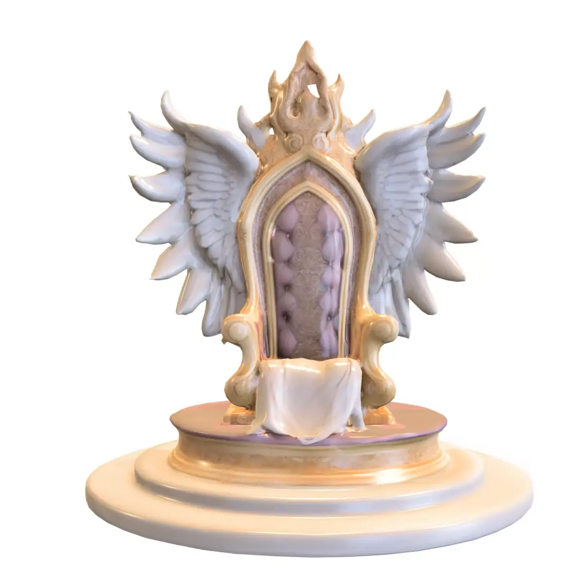 A highly detailed 3D model of a celestial throne with elegant wings and golden ornaments. Perfect for fantasy scenes, games, or collectible renders. Includes intricate sculpting, realistic materials, and divine design aesthetics. Ideal for 3D printing, animation, and concept art projects.Texture: PNG 1024X 1024Vertices:10.898Triangles:21.804Size X:1,86Size Y:2,00Size Z:1,86