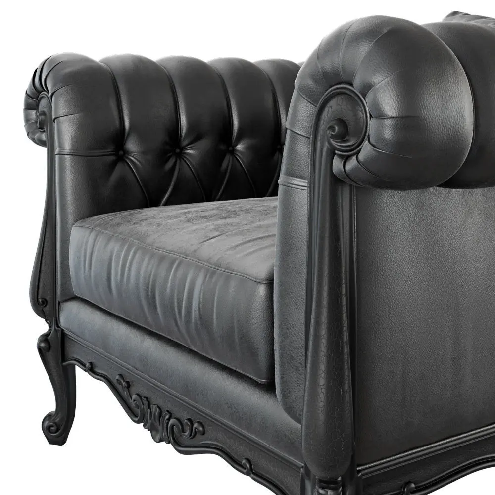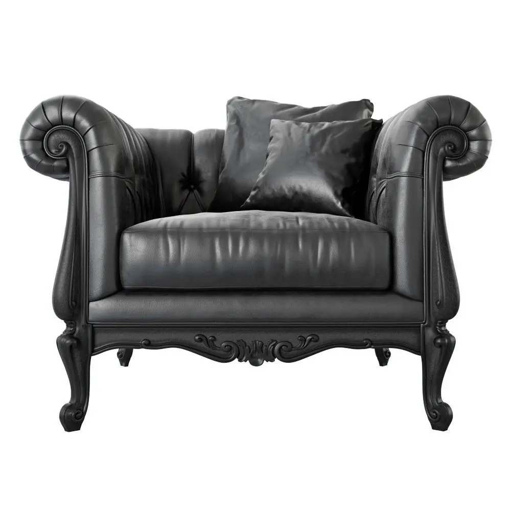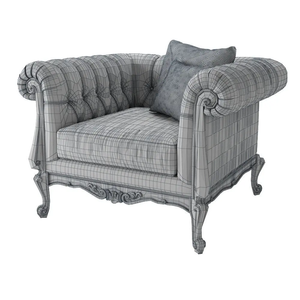 Armchair on curved carved legs with soft armrests located on the same level as the back is represented by the ANGELO CAPPELLINI factory in the Opera collection. The chair is made of solid beech wood and decorated with handmade carvings. Upholstery - leather, filling - non-deformable foamed polyurethane with the addition of a feather.