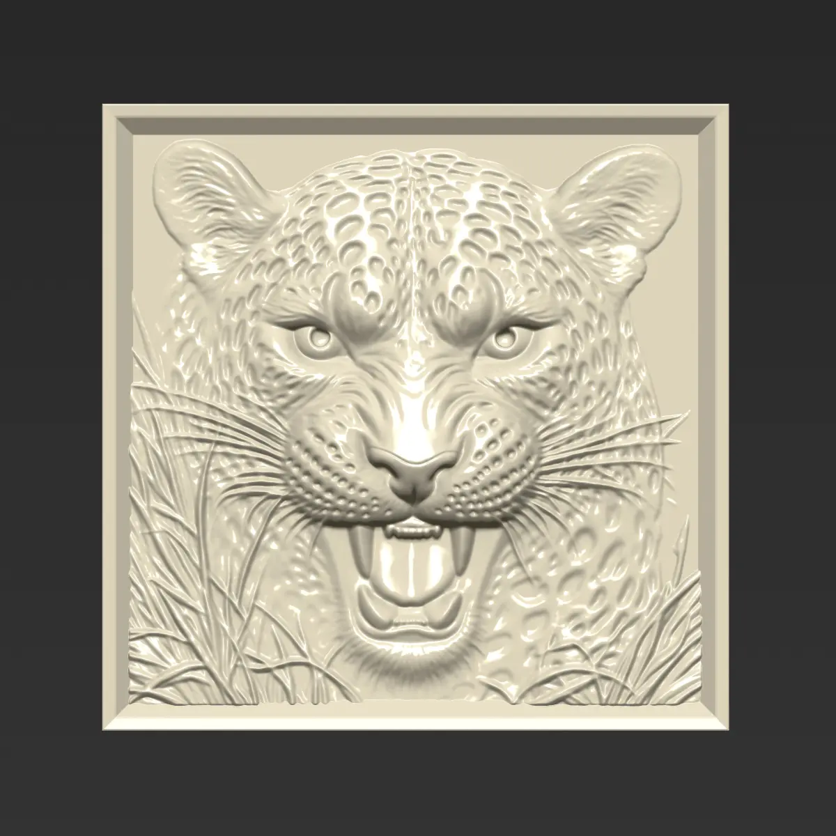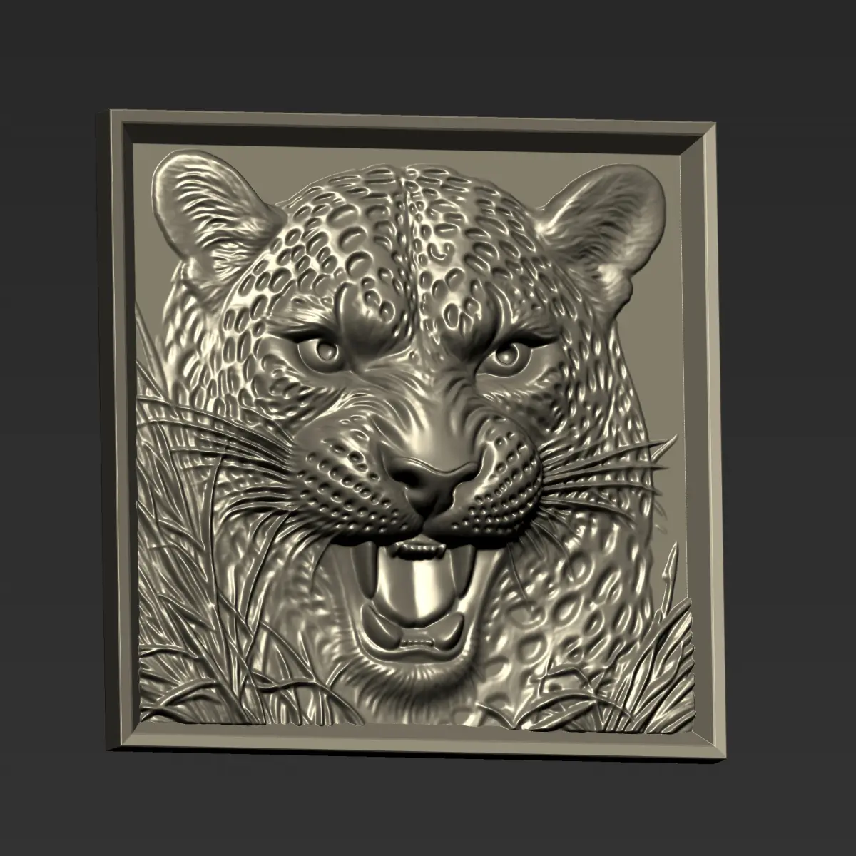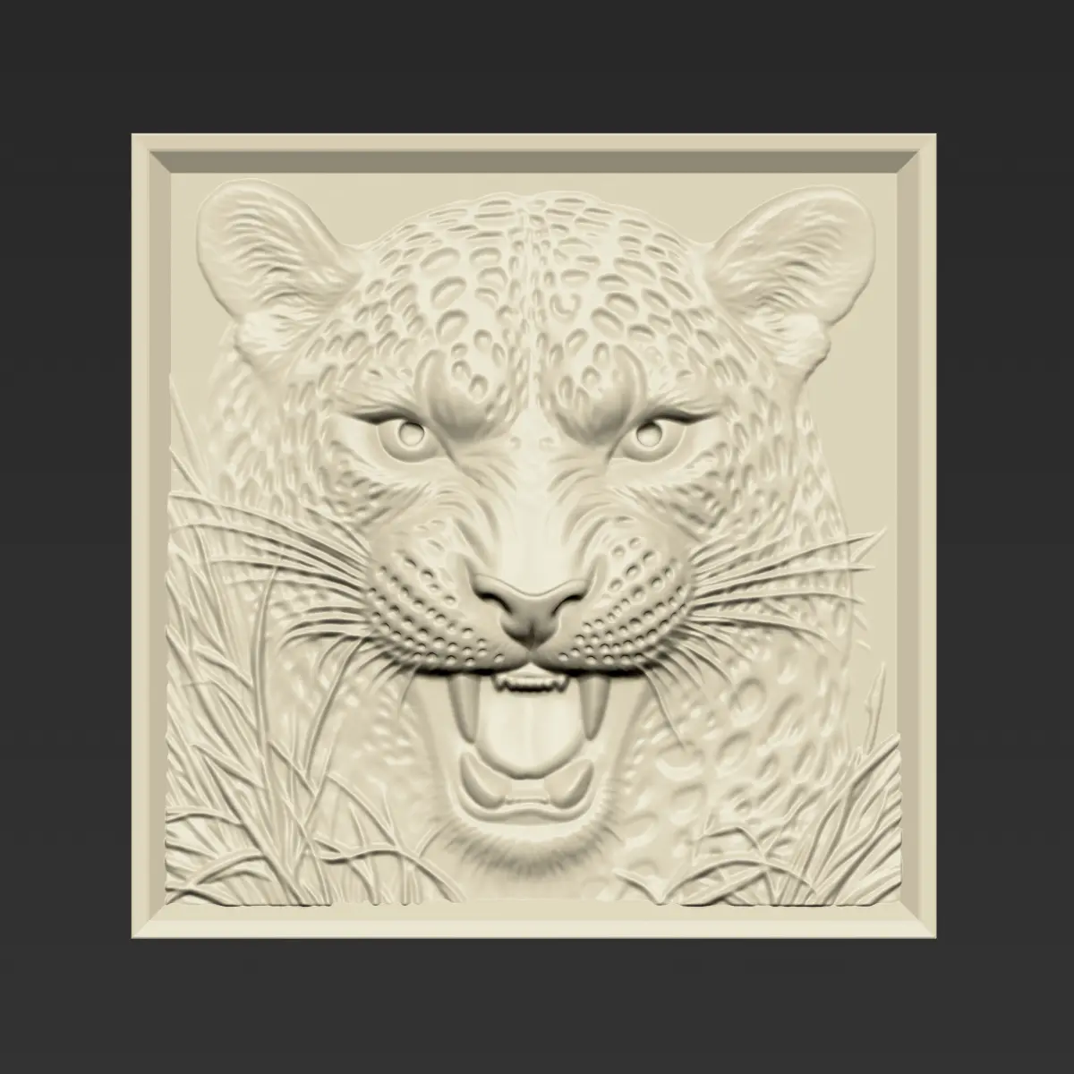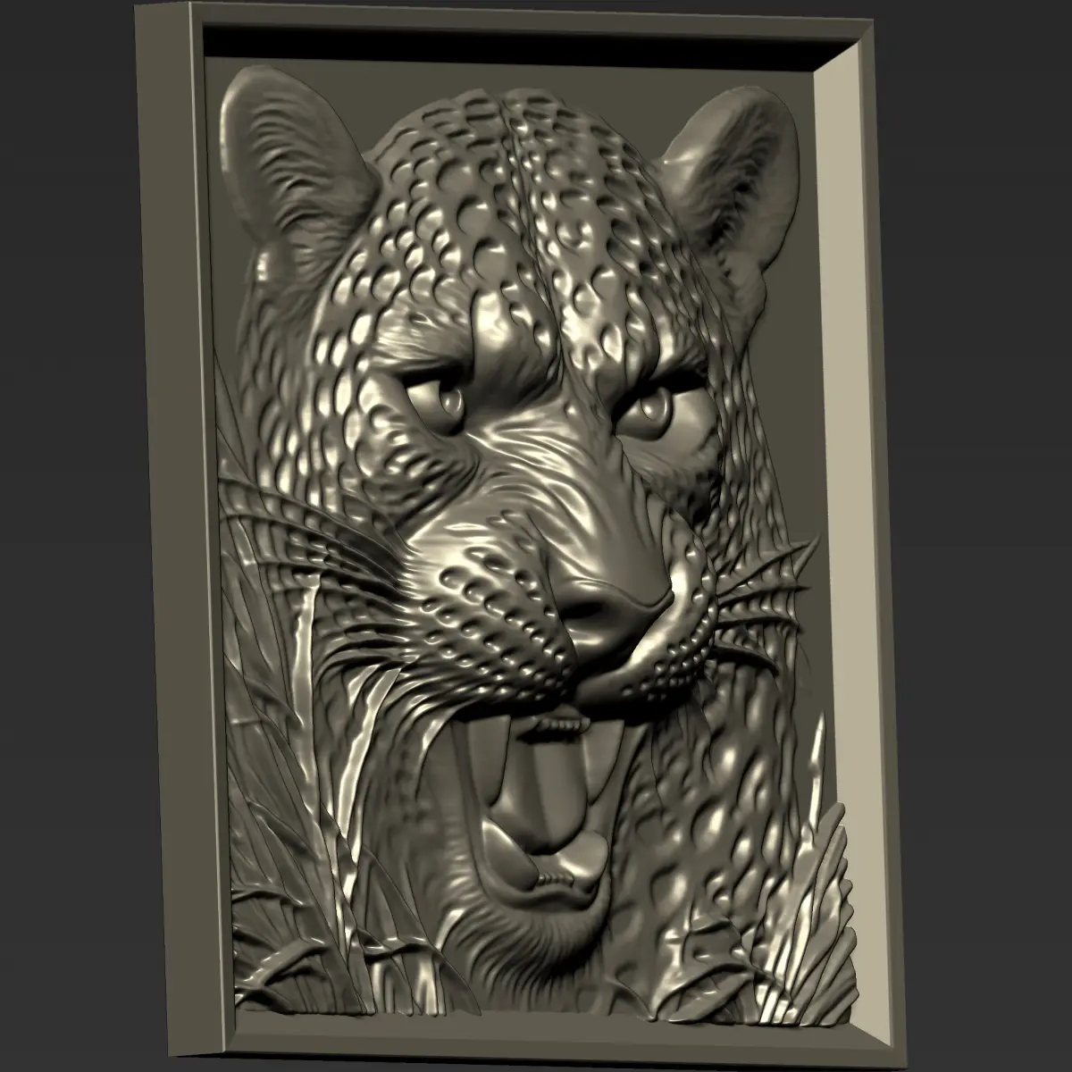 3d model of bas-relief of an angry leopard head ready for CNC Router Carving or 3d printer.OBJ,STL format.Note:All the models are not for resale,it is illegal!