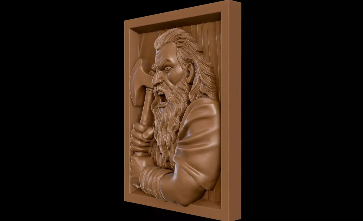Hand-sculpted Woodcutter relief, decimated to ~200,000 vertices.