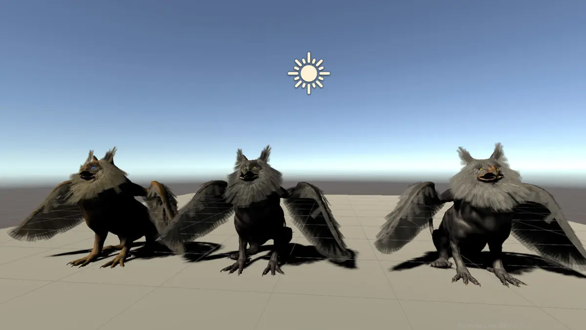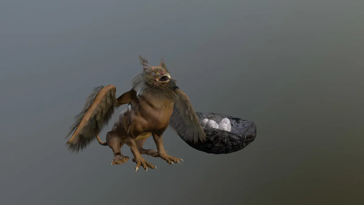 The model contains 16 animations walk(x1) attack (x2)idle(x3)death(x2)turn(x2)reaction(x1)flight(x1)sit(x2)yawn(x1)