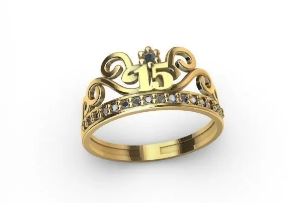 anillo 15 años para dama de curvas- troda la informacion esta en las imagenes - peso 2.5 gramos- piedras 2mm a 1mm- talla 7 ajustable en cera- todo lo que se ve en las imagenes es lo que se vende- la ultima imagen es como se ve en archivo stl- todo lo que se ve en las imagenes es lo que se vende- cualquier duda comunicaquenos (>‿◠)