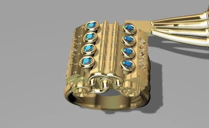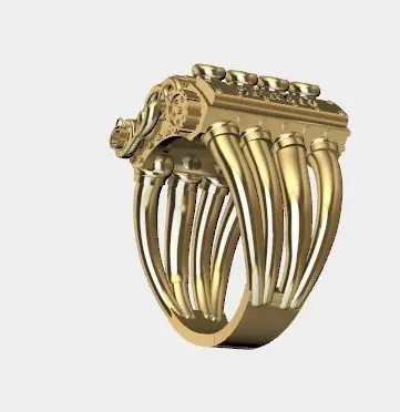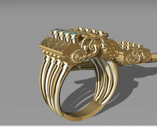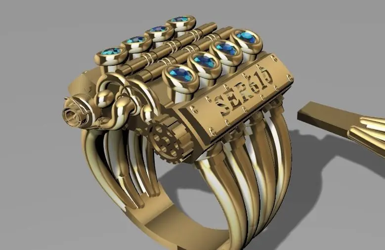 anillo de motor para mecanico motor v8 con turbo y bacun, con sus arboles de levan y piedras en la culata de peso apoximado de 20 gramos aproximados disponible en 3dm y stl en dos versiones para que le den peso si necesitan algo pueden contactarme