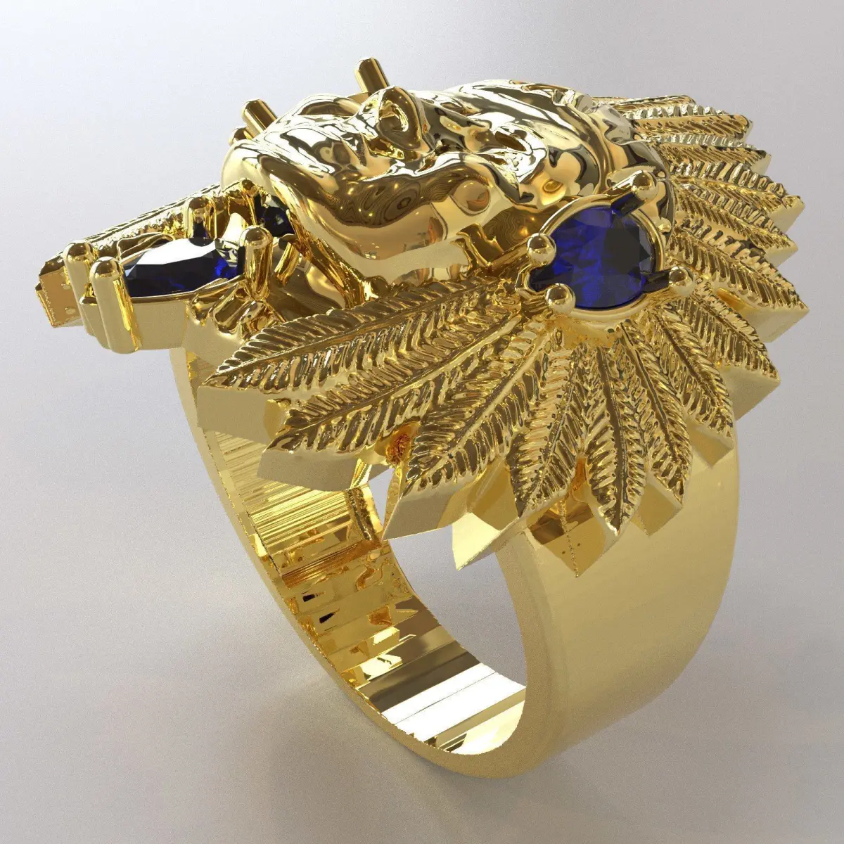Anillo de indio nativo para caballero con piedras zafiro de 5mm de alto y 3mm de ancho, realizado en blender y conjunto con Rhino para realizar su renderizado.